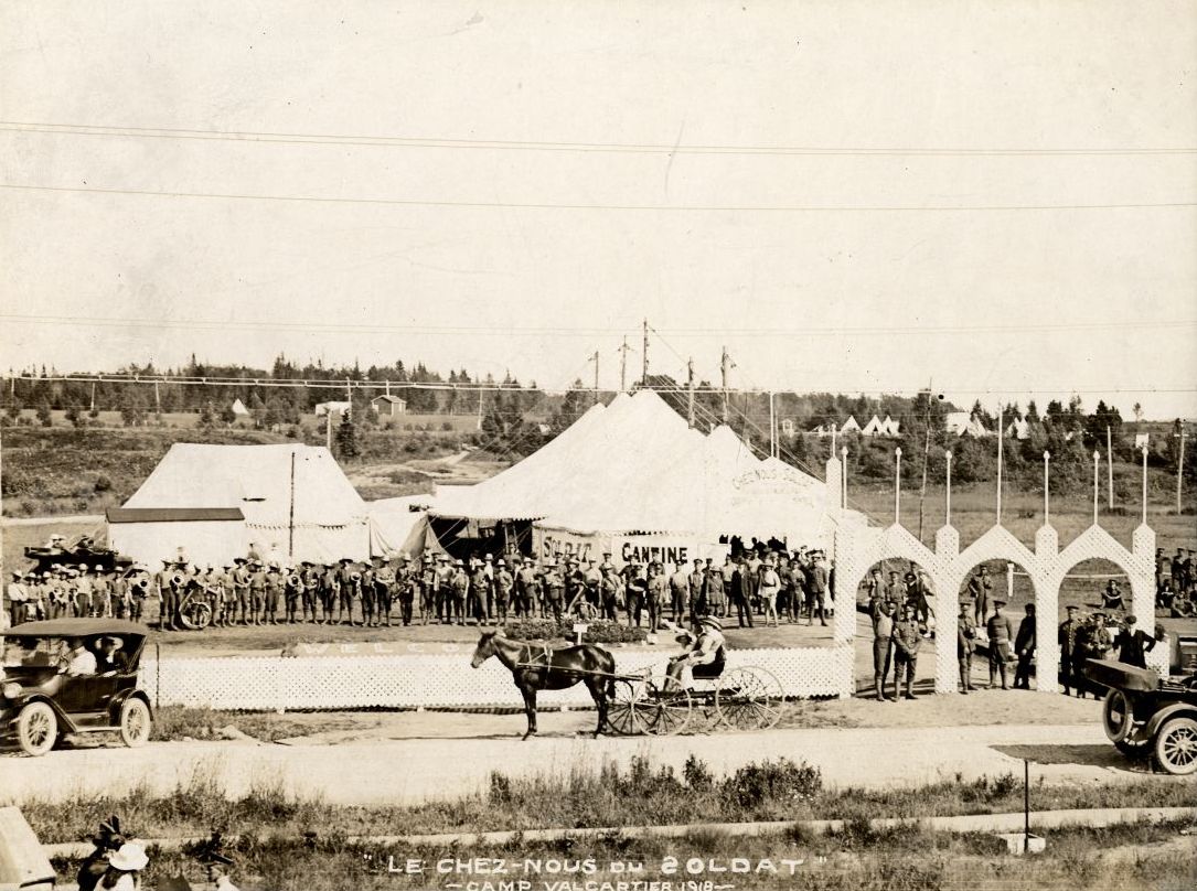The base also houses 430 Tactical Helicopter Squadron, CI SQFT (Land Force Quebec Area Training Centre), in addition to providing training facilities for most Quebec-based reserve units. The Myriam Bédard Biathlon Training Centre is also located on the base. CFB Valcartier is also home to a Defence Research and Development Canada (DRDC) location, which conducts military research for the Canadian Armed Forces. Canteen named "Le chez nous du soldat", 1918 Postcard of tents hastily erected to accommodate thousands of troops during the First World War Vaccination of soldier during WWI Governor General of Canada, Alexander Cambridge, 1st Earl of Athlone, and Prime Minister of Canada, William Lyon Mackenzie King, inspecting troops, 1940 CadetsMap of the base ASU Valcartier is also the home of the Army Cadet Summer Training Centre Valcartier, which trains Royal Canadian Army Cadets of the Eastern Region / Province of Quebec. In July 1974, an explosives safety training accident involving "D" Company killed six cadets and injured over 50. A coroner's inquiry found the instructor criminally responsible. Command teamColonel Stéphane Boucher is commander, and chief warrant officer Dominic Gaudreau is sergeant major. 100th AnniversaryIn 2014, CFB Valcartier celebrated its 100th anniversary. David Johnston, then Governor General of Canada, offered a message about the role the base and its soldiers who have played in the history of Canada. Prime minister Stephen Harper also thanked the soldiers. CFB Valcartier newspaperAdsum is a bi-monthly newspaper (22 copy / year) for CFB Valcartier and the military community in the Quebec eastern area. The newspaper was created in 1972. It publishes 4,200 copies. The readers of the newspaper are mostly the military (active and retired) and civilians working at CFB Valcartier. The newspaper team also publishes the Military Community Guidebook - Quebec Region annually. Saint Jeanne d’Arc ChapelThe Military Ordinariate of Canada integrated a chapel which is situated at CFB Valcartier. The chapel is named Saint Jeanne d’Arc Chapel. This service is for all military persons of CFB Valcartier. The Chapel Life Coordinator is Captain Titus Ndala. Military CemeteryCFB Valcartier Military Cemetery, opened to serve the camp in 1914, contains the graves of nine Canadian Army personnel, six from World War I and three from World War II, registered and maintained by the Commonwealth War Graves Commission. Economic facts