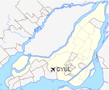 Montréal–Pierre Elliott Trudeau International Airport (IATA: YUL, ICAO: CYUL) (French: Aéroport international Pierre-Elliott-Trudeau de Montréal) or Montréal–Trudeau, formerly known as Montréal–Dorval International Airport (Aéroport international Montréal-Dorval), is an international airport serving Montreal, Quebec, Canada, located on the Island of Montreal, 20 km (12 mi) from Downtown Montreal. The airport terminals are located entirely in the suburb of Dorval, while one runway is located in the Montreal borough of Saint-Laurent. Air Canada, the country's flag carrier, also has its corporate headquarters complex on the Saint-Laurent side of the airport. It also serves Greater Montreal and adjacent regions in Quebec and eastern Ontario, as well as the states of Vermont and northern New York in the United States. The airport is named in honour of Pierre Elliott Trudeau, the 15th Prime Minister of Canada and father of current Prime Minister Justin Trudeau. The airport is one of two managed and operated by Aéroports de Montréal (ADM), a not-for-profit corporation without share capital; the other being Montréal–Mirabel northwest of Montreal, which was initially intended to replace the one in Dorval but now deals almost solely with cargo. Montréal–Trudeau is owned by Transport Canada which has a 60-year lease with Aéroports de Montréal, as per Canada's National Airport Policy of 1994. Trudeau is the busiest airport in the province of Quebec and the third-busiest airport in Canada by both passenger traffic and aircraft movements, with 18.16 million passengers and 235,099 movements in 2017. It is one of eight Canadian airports with United States border preclearance and is one of the main gateways into Canada with 11.2 million or 62% of its passengers being on non-domestic flights, the highest proportion amongst Canada's airports during 2016. It is one of four Air Canada hubs and, in that capacity, serves mainly Quebec, the Atlantic Provinces and Eastern Ontario. The air route between Montreal and Paris (CDG and ORY airports) is the busiest international inter-city route from Canada. On an average day, nearly 50,000 passengers transit through Montréal-Trudeau. Airlines servicing Trudeau offer year-round non-stop flights to five continents, namely Africa, Asia, Europe, North America and South America. It is one of only two airports in Canada with direct flights to five continents or more, the other being Toronto Pearson International Airport. Trudeau airport is the headquarters of and a large hub for Air Canada, the country's largest airline. It is also the headquarters of Air Inuit and Air Transat, and an operation base for Sunwing Airlines and Porter Airlines. It also plays a role in general aviation as home to the headquarters of Innotech-Execair, Starlink, ACASS and Maintenance Repair & Overhaul (MRO) facilities of Air Transat and Air Inuit. Transport Canada operates a Civil Aviation Maintenance, Repair and Overhaul facility on site, with a fleet of Government owned and operated civil aircraft. Bombardier Aerospace has an assembly facility on site where they build regional jets and Challenger business jets.