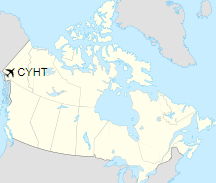 Haines Junction Airport (IATA: YHT, ICAO: CYHT) is located 2 nautical miles (3.7 km; 2.3 mi) northwest of Haines Junction, Yukon, Canada. The airport has no scheduled airline service and is served by one fixed wing charter and two helicopter operators. Haines Junction is the gateway to Kluane National Park and Reserve.