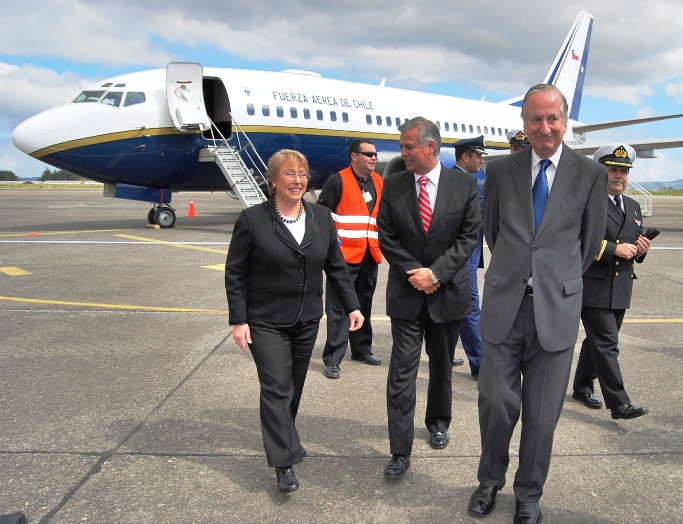 La presidenta Michelle Bachelet llegando al aeropuerto en 2009.