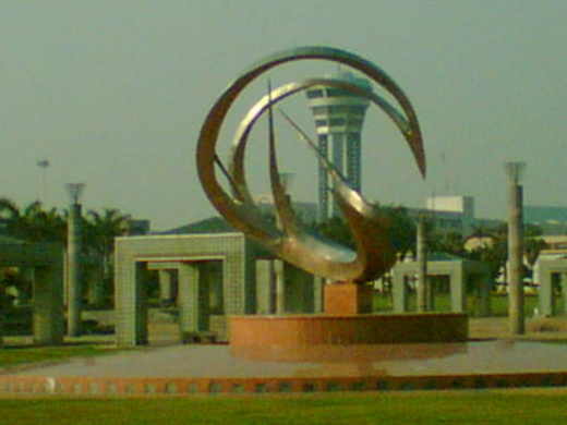An emblem of the airport. Behind, the control tower can be clearly seen |