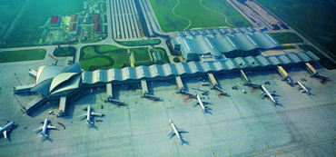 Hangzhou Xiaoshan International Airport (IATA: HGH, ICAO: ZSHC) (simplified Chinese: 杭州萧山国际机场; pinyin: Hángzhōu Xiāoshān Guójì Jīchǎng) is the principal airport serving Hangzhou, a major city in the Yangtze River Delta region of the People's Republic of China and the provincial capital of Zhejiang. The airport is built on the southern shore of Qiantang River in the Xiaoshan district and is 27 km away from downtown Hangzhou. In 2009, Hangzhou airport handled 14,944,716 passengers and became the 9th busiest airport in China. In addition, the airport was the country's 8th busiest airport in terms of cargo traffic and the 10th busiest airport by traffic movements. HistoryThe airport was planned to be constructed in three phases. The first phase of construction started in July 1997, and was completed and opened for traffic on December 30, 2000. It replaces the old Hangzhou airport, which was a shared civil and military airfield. In September 2003, the central government of China declared HGH an international airport and, in March 2004, the airport officially became an international airport after immigration and customs facilities were built and put into service. The airport was a hub of CNAC Zhejiang. After the airlines' merger with Air China, the latter inherited the Hangzhou hub. UFO appearanceOn the evening of 9 July 2010, the airport was shut down for an hour when an unidentified flying object was detected. Air traffic control could not locate it on radar and prudently waved off landing flights. Eighteen flights were affected. Though normal operations resumed four hours later, the incident captured the attention of the Chinese media and sparked a firestorm of speculation on the UFO's identity. The last famous case of a "UFO" closing an airport that was later linked to a Russian space launch occurred in Barnaul, Siberia in 2001. FacilitiesPhase One of the airport occupies 7,260 acres of land. It has a capacity of eight million passengers and 110,000 tons of cargo a year, and can handle aircraft as large as the Boeing 747-400. It has one runway of 3,600m in length and 45m in width. The passenger terminal can handle 3,600 passengers an hour and is 100,000 square metres in size (including an underground parking of 22,000 square metres). The departure level has 36 ticket counters, including 12 in the international side of the terminal. There are 2,900 seats in the departure lounge. The immigration and customs area occupies 9,500 sq. metre of terminal space. The apron occupies 340,000 square metres of land, and there are 12 jetways and 18 departure gates. Maintenance facilities are certified to perform B-Check on all types of aircraft and C-Check on Boeing 737 and Boeing 757 aircraft. TransportationThe Shanghai-Hangzhou-Ningbo Expressway has an exit at the airport. There are airport buses to downtown Hangzhou and Xiaoshan as well as to prefectures further away such as Yiwu. Airlines and destinationsThe following airlines serve Hangzhou as of July, 2010: Passenger