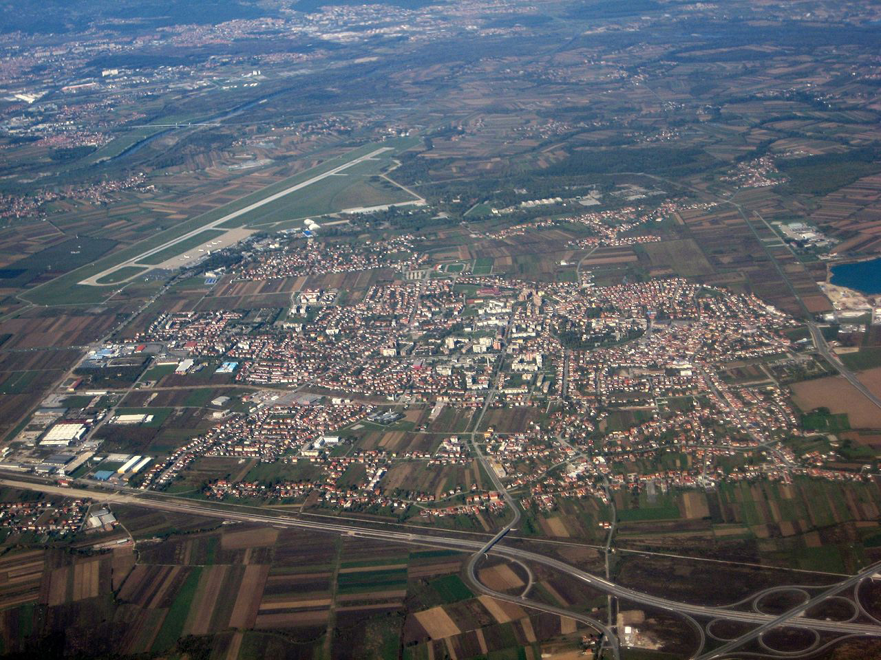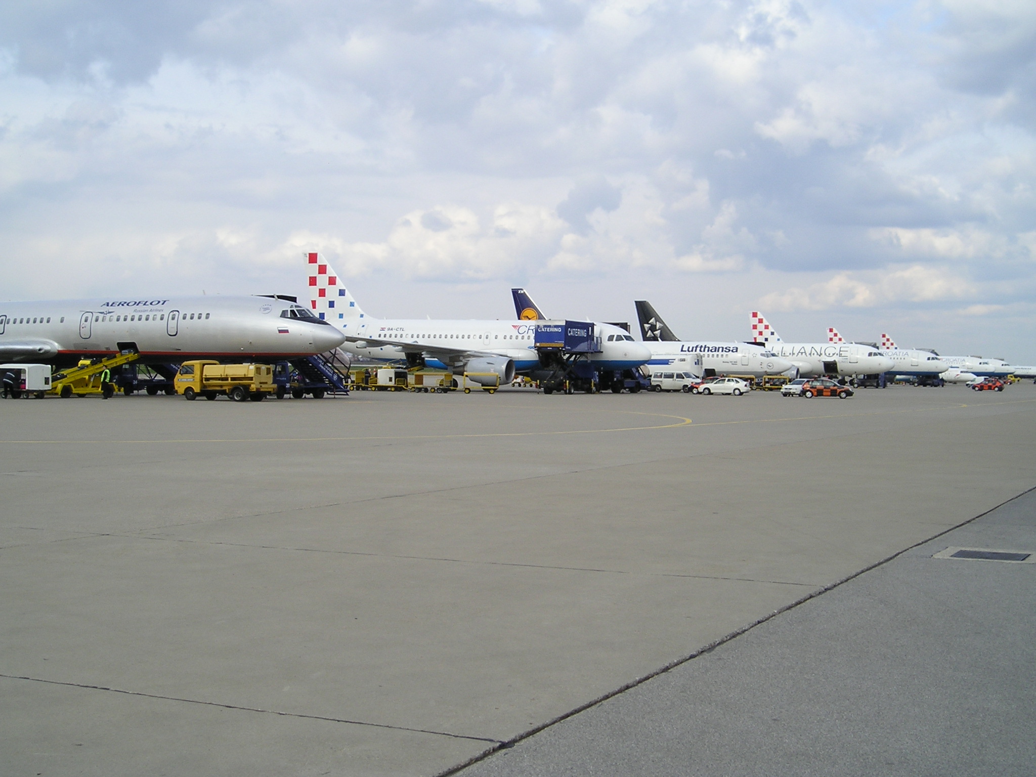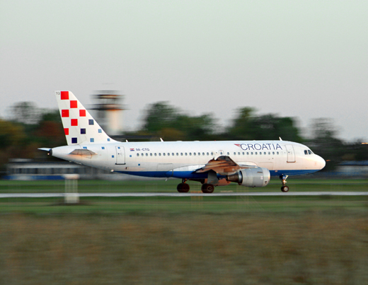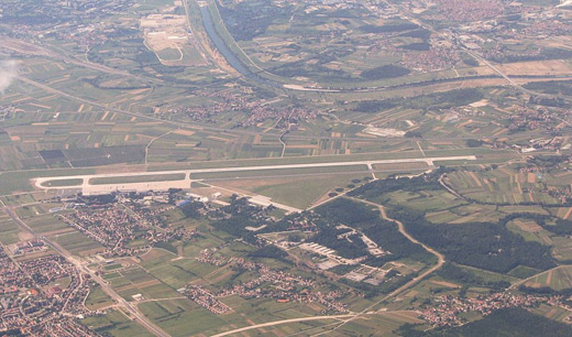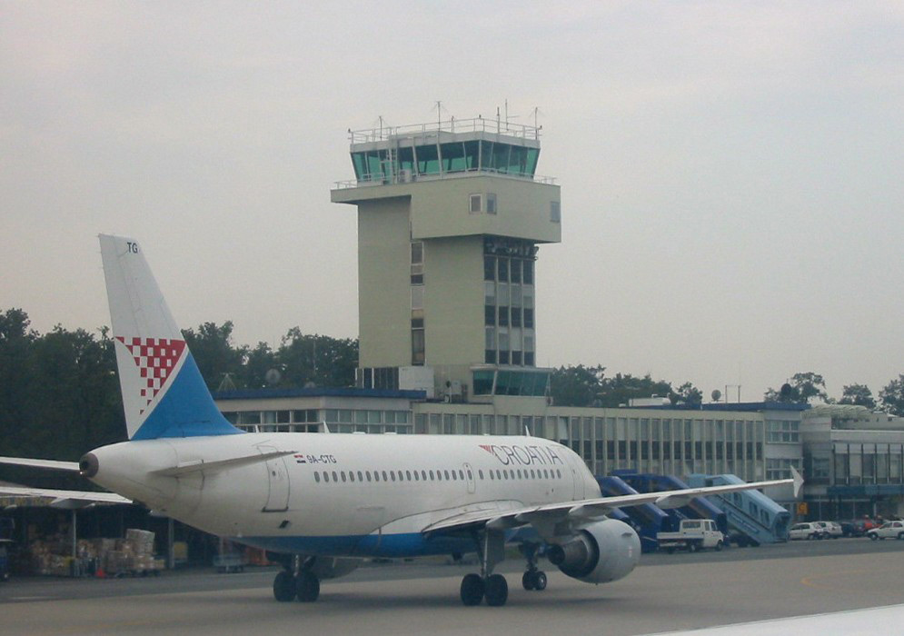 Zagreb Airport (IATA: ZAG, ICAO: LDZA), also known as Pleso Airport after the nearby suburb of Pleso, is the main international airport of Croatia and also a Croatian Air Force and Defense major fighter jet base. Located 10 km from the central railway station in Zagreb, it served 2,062,242 passengers in 2009 and is the primary hub for Croatian flag carrier Croatia Airlines. Expansion of the airport is due to start in 2010. HistoryThe first airfield in Zagreb was built in 1909 near the western city neighbourhood of Črnomerec. It was used by Slavoljub Eduard Penkala for the airplanes he designed. In 1927, Charles Lindbergh made a landing in Borongaj Airfield (east of Zagreb) after his successful crossing of the Atlantic Ocean. The airfield began serving passenger traffic on 15 February 1928. On 1 April 1947, commercial services were moved to a former airbase near the village of Lučko, southwest of the city. At its peak in 1959, Lučko served 167,000 passengers. On 20 April 1962, flight services were once again moved, this time to the current location near the suburb of Pleso in the southeast. It first opened with a 2,500 m long runway and 1,000 m² terminal. A new 5,000 m² terminal was built in 1966, as well as the apron expansion. In 1974, the runway was extended to its current 3,250 m, and the terminal expanded to its current 12,000 m². The airport's peak level of traffic was in 2008, with 2.2 million passengers. In 2004, the airport installed a CAT-IIIb instrument landing system (ILS). The VIP terminal was completed in 2008 and is located just south-west of the old terminal, which is also going to be refurbished. Expansion and modernisationThe passenger terminal underwent major design upgrade, new VIP terminal was added to the west of the current terminal in 2008, and new unified facade (at the front of the terminal) was also added in 2009. The passenger terminal has a maximum capacity of around 2.5 million passengers per year with current traffic being around the 2.2 million mark. The main terminal building itself is rather small measuring only 200x58meters or around 20 000 m². Apron or airport ramp measures 950x187meters and can accommodate around 15 medium and 2 wide body aircraft. A new terminal is planned for the future. The initial plan, made by NACO in 1997, was for 47,000 m² of space, capacity for 11 jetways, and the capability of handling 3 million passengers annually, but the airport authority decided to scrap this plan in favor of a larger terminal. A new master plan has been developed by Scott Associates in 2006 and the new terminal is now expected to have 12 jetways and a capacity of 3.3 million passengers annually. It will be approximately 65,600 m² in area, nearly five times the size of the current terminal. This plan was also scrapped and a competition was held in hope of an even larger airport. A competition for the final architectural and urban planning solution took place in August 2009, and the winner (IGH d.d.) was declared at the beginning of October. This proposal, designed by Neidhardt architects of Zagreb, includes a retail component with stores, banks, cafes and restaurants. A new luxury hotel with direct underground links to the terminal is planned, directly in front of the new terminal. The new terminal will consist of glass walls and roof in a wavy facade. It will be built in three stages, the first stage being able to cater for over five million passengers. This will increase as the second and third stage opens. Construction is expected to cost €280 million, but due to financial crisis the realisation of the project is uncertain at the present time. Following completion, the old terminal will be used for low-cost operators. Air Force operations will move to the south end of the airport due to the construction. The start of construction is expected to take place August 2012 due to cost restraints. Meanwhile the old terminal will have a major face lift and minor expansion expected to cost 6 million euros. Accompanying the terminal will be a second parallel runway. The completion date is unknown at this stage. There will also be a new rail line alongside the Eastern bypass of Velika Gorica (currently under construction), which extends from Zagreb across the Homeland Bridge completed in 2007. These elements will create an entirely new east entrance into the city adding to the one via D408 state road. The airport is being built so more expansions can be conducted easily if needed. A second runway is also in option. Airlines and destinationsThe following scheduled passenger airlines use Zagreb Pleso Airport (as of May 2010):