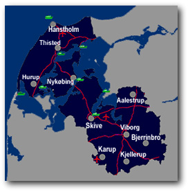 In 1996, Karup Airport extended the terminal with a new gate, that serves as an foerign-travels facility. Here the tax-free shop I situated. Also passport- and customs have been established, so that the airport today has the status of being an international airport (ICAP and Schengen-status) This extention of the airport cost app. 8 mill. DKR. And finally in 1997, the airplane pitch was made bigger – from 12.000 to 25.000 m2 – costing around 11. mill DKR. All in all, Karup Lufthavn has invested right about 125 mill. DKR. Just the terminal itself is financed by loans; the rest has Karup Airport provided from its own capital. Phone: (+45) 97 10 06 10 Fax: (+45) 97 10 06 65 Aftn adresse: EKKAYOYP Sita adresse: KRPKOQI (via Cimber Air) Email: mail at karup-airport dk Email: webmaster at karup-airport dk WWW: Karup Airport Images and information placed above are from http://www.vibamt.dk/ea/rifo/facts/infrastr.htm, We thank them for the data!