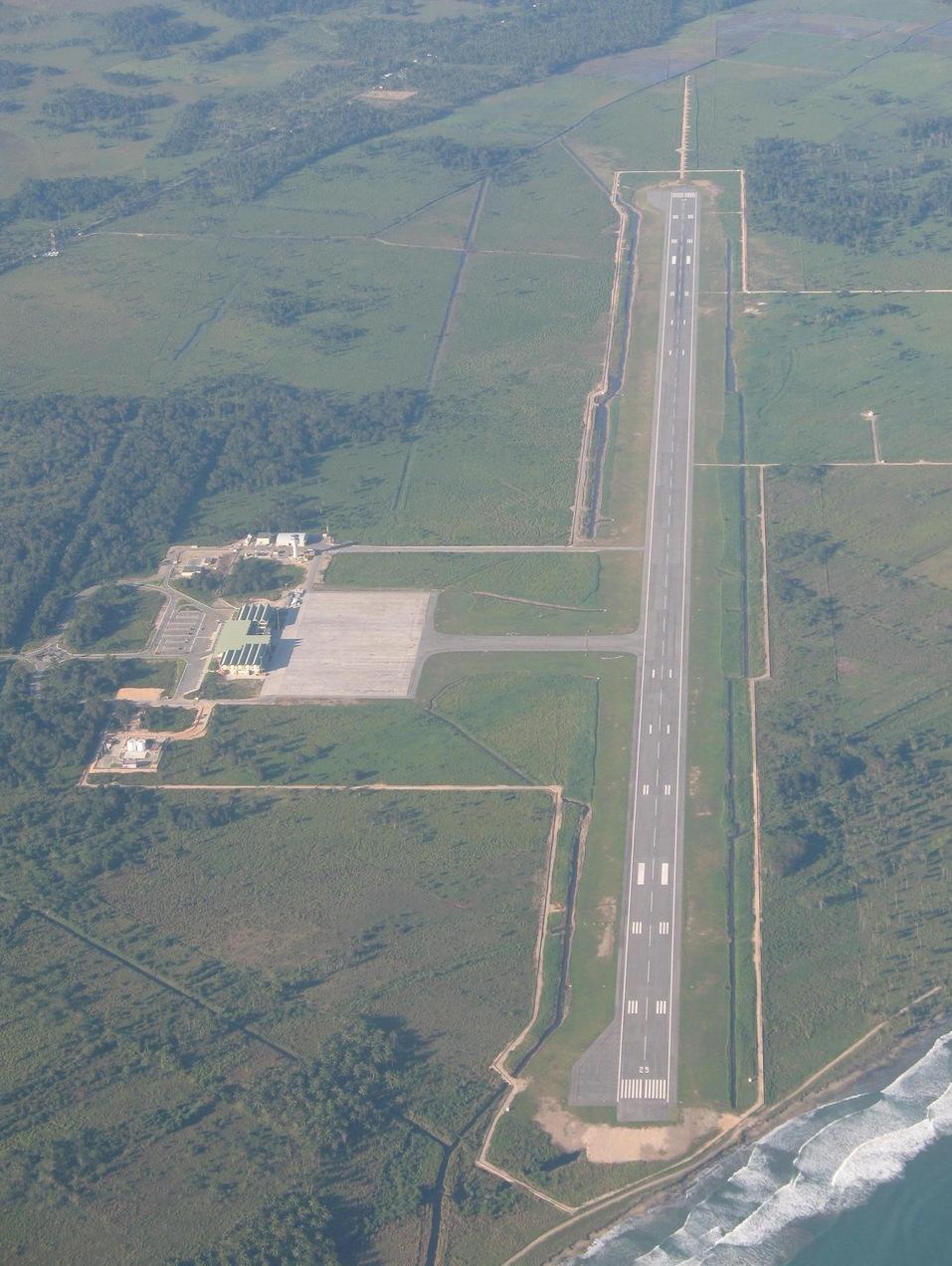 The airport's new runway is 3000 m x 45 m, flexible pavement load-rated PCN 66 F/A/W/T, designed to accommodate a Boeing 747.