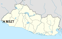 El Zapote Airport (ICAO: MSZT) is an airport serving the village of El Zapote in Ahuachapán Department, El Salvador. The runway is on a point in the Bahia de Jiquilisco.