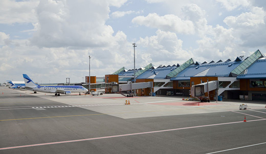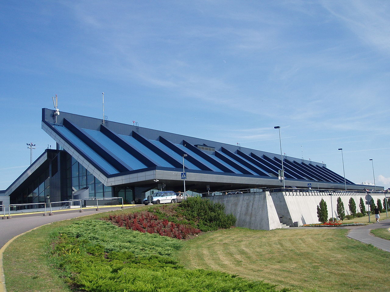 Lennart Meri Tallinn Airport or Ülemiste Airport (IATA: TLL, ICAO: EETN; Estonian: Lennart Meri Tallinna lennujaam) is the largest airport in Estonia and home base of the national airline Estonian Air. Tallinn Airport is open to both domestic and international flights. It is located approximately 4 kilometers from the centre of Tallinn on the eastern shore of Lake Ülemiste. The airport has a single asphalt-concrete runway that is 3070 meters long and 45 meters wide (large enough to handle wide-bodied aircraft such as the Boeing 747), five taxiways and fourteen terminal gates. The airport has also seen military use as an interceptor aircraft base. It was home to 384 IAP (384th Interceptor Aircraft Regiment) which flew MiG-23P aircraft. Since March 29, 2009 the airport is officially known as Lennart Meri Tallinn International Airport, in honour of the late Estonian diplomat and former president Lennart Meri. HistoryPrior to the establishment of the present airport in Ülemiste area, Lasnamäe Airfield was the primary airport of Tallinn, serving as a base for Aeronaut airline. After Aeronaut went bankrupt in 1928, air service was continued by Deruluft, which used Nehatu instead, 12 kilometres from the centre of Tallinn. The first seaplane harbour on the shores of Lake Ülemiste was built 1928 to 1929 in order to serve Finnish seaplanes. The use of this harbour ended in World War II. On 26 March 1929 Riigikogu passed an expropriation act in order to establish a public airport. 10 ha of land was expropriated from Dvigatel joint-stock company and another 22 ha was expropriated from descendants of Vagner. 10 million sents were paid to land-owners as indemnity. Land leveling and renovation works took another 5 million sents. The building of Tallinn Airport started in 1932, and the airport was opened officially on 20 September 1936, although it had been operational a good while before the official opening. The total cost of the project, including the cost of building flight hangars, was 25 million sents. The runways of the first stage were about 40 metres wide and 300 metres long. As they were arranged in a form of a triangle, they allowed take-offs and landings in six directions. Before World War II, Tallinn Airport had regular connections to abroad by at least Aerotransport (now part of the SAS Group), Deutsche Luft Hansa, LOT and the Finnish company Aero (now Finnair). Soviet periodBetween 1945 and 1989, Aeroflot was the only airline that served Tallinn Airport. Regular flights with jet aircraft began on 2 October 1962 with a maiden passenger flight from Moscow for then newest Soviet airliner Tu-124. A new terminal building was built in the late 1970s and the runway was also lengthened then. The first foreign airline since World War II to operate regular flights from Tallinn was SAS in the autumn of 1989. Modern developmentThe construction works of the first cargo terminal (Cargo 1), located in the middle of future cargo area on the north side of the airport, were carried out from September 1997 until March 1998. The passenger terminal building was completely modernised in 1999, increasing its capacity to 1.4 million passengers per year and after that greatly expanded in 2008. The growing demand for extra space for cargo operations, created a situation were there was need for cargo terminal expansion, Cargo 2. In order to meet the growing demand for new cargo facilities at Tallinn Airport, the number of cargo terminals was later expanded to four. In year 2012 a new aircraft maintenance hangar was opened and a number of passengers passed two million mark the first time in the history of the airport. On 11 January 2013 the airport was accepted into Airport Carbon Accreditation emission managing and reduction programme by ACI. The year 2013 saw an introduction of an automatic border control system and a start of construction of a new business aviation hangar complex. 2008 expansionThe airport underwent a large expansion project between January 2006 and September 2008. The terminal was expanded in three directions, resulting in 18 new gates, separate lounges for Schengen and non-Schengen passengers, 10 new check-in desks and a new restaurant and cafes. Due to the gallery that connects all the gates and was constructed in the middle of the terminal building the terminal became T-shaped. The projecting terminal section enables a two-level traffic for international passengers. The renewed terminal has nine passenger bridges. The extensions constructed at the ends of the terminal building became additional rooms for registering for the flights and for delivering arriving luggage. Outside the terminal, the apron was refurbished and expanded and a new taxiway was added. The new terminal allows the airport to handle twice as many passengers as it could handle before. RenamingAfter the death of former president of Estonia Lennart Meri on 14 March 2006, journalist Argo Ideon from Eesti Ekspress proposed to honor the president’s memory by naming Tallinn Airport after him – “Tallinna Lennart Meri Rahvusvaheline Lennujaam” (Lennart Meri International Airport), drawing parallels with JFK Airport, Paris-Charles de Gaulle Airport, Istanbul-Atatürk Airport etc. Ideon’s article also mentioned the fact that Meri himself had shown concern for the condition of the then Soviet-era construction (in one memorable case Meri, having arrived from Japan, led the group of journalists that were expecting him, to the airport’s toilets to do the interview there, in order to point out the shoddy condition of the facilities). The name change was discussed at a board meeting on 29 March 2006, and on the opening of the new terminal on 19 September 2008, Prime Minister Andrus Ansip officially announced the renaming would take place in March 2009 Baltic Sea cruise turnaroundsIn 2011 a new project of cruise turnarounds was launched in cooperation with Tallinn Passenger Port and Happy Cruises. More than 7,000 Spanish pas