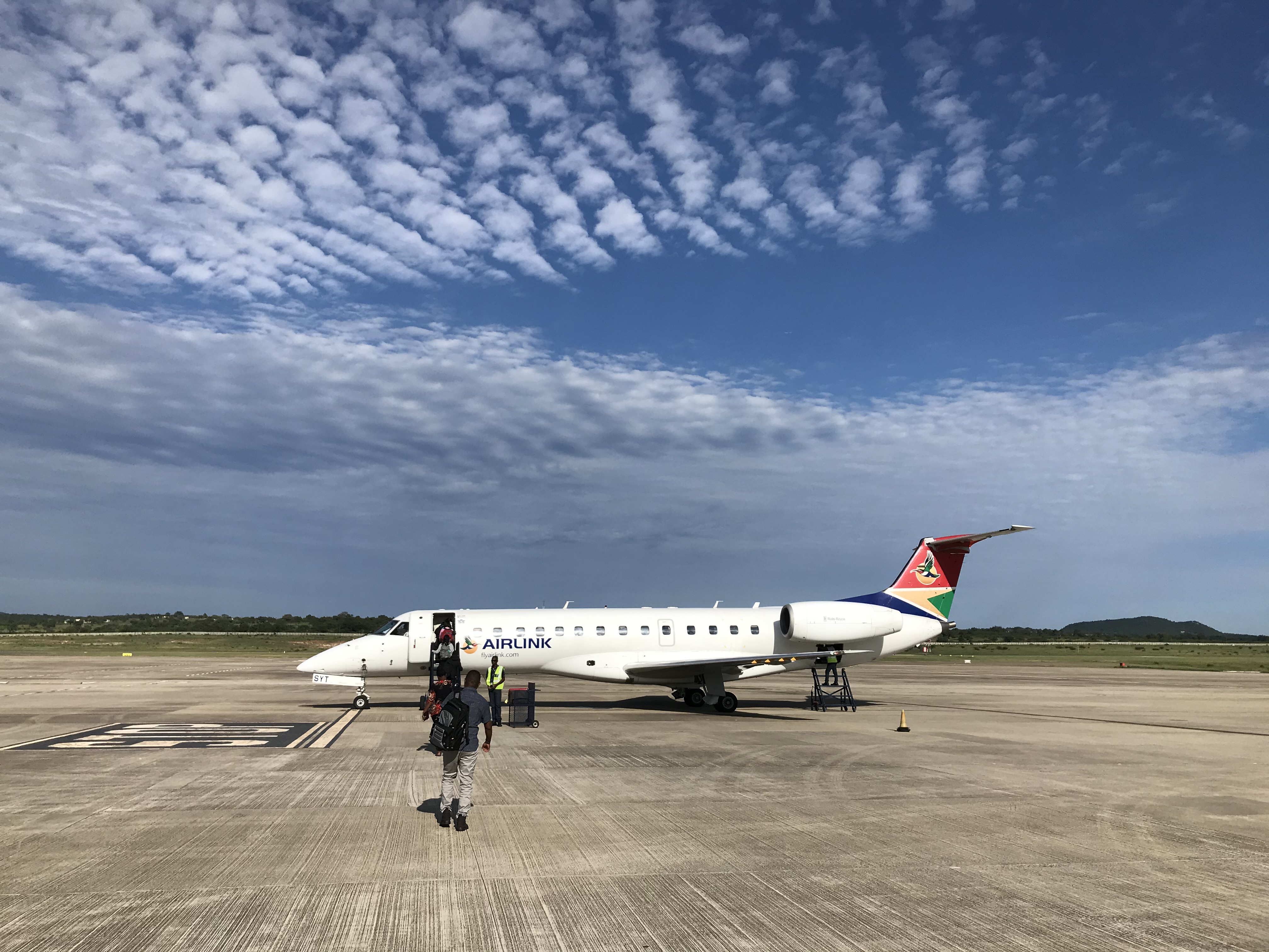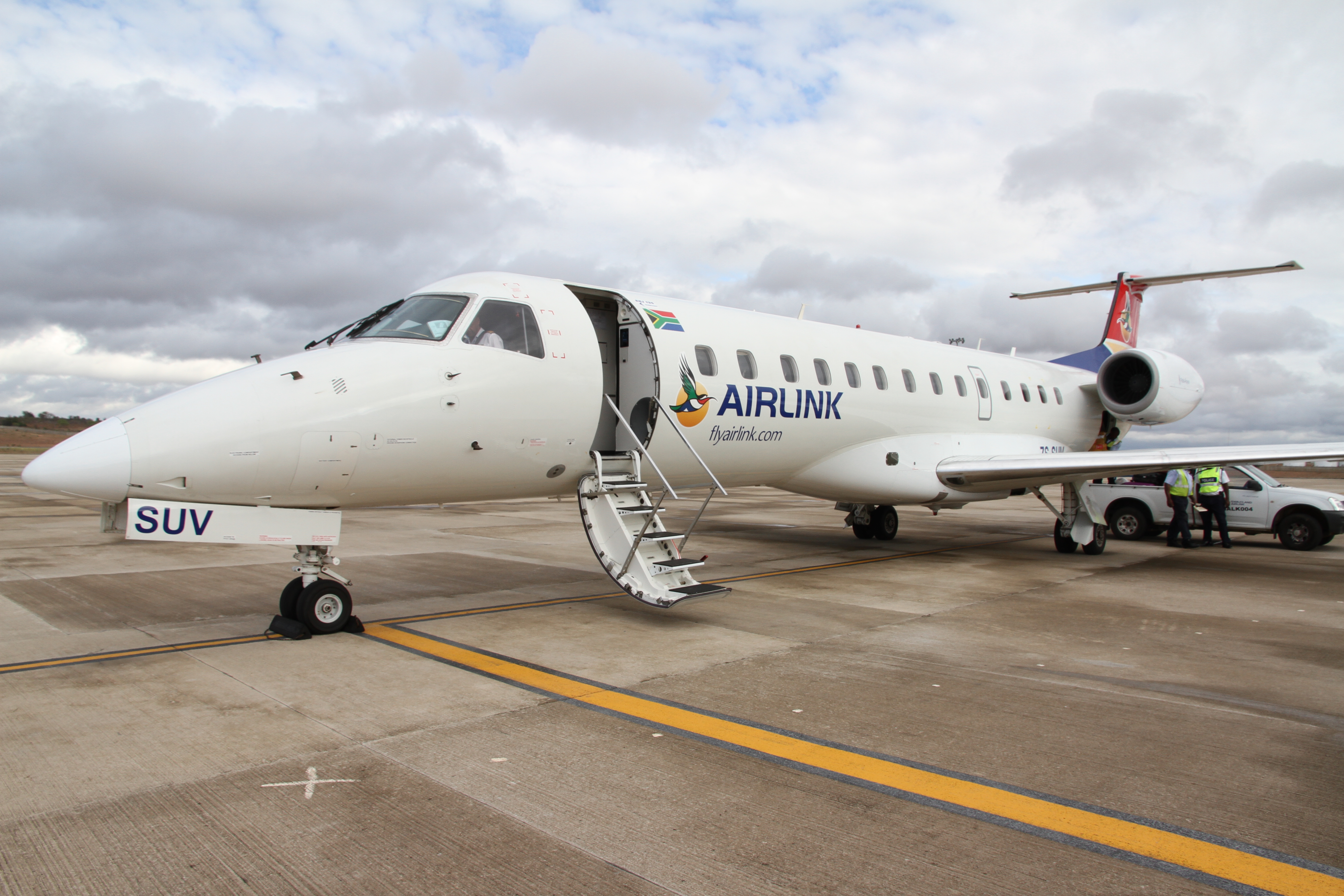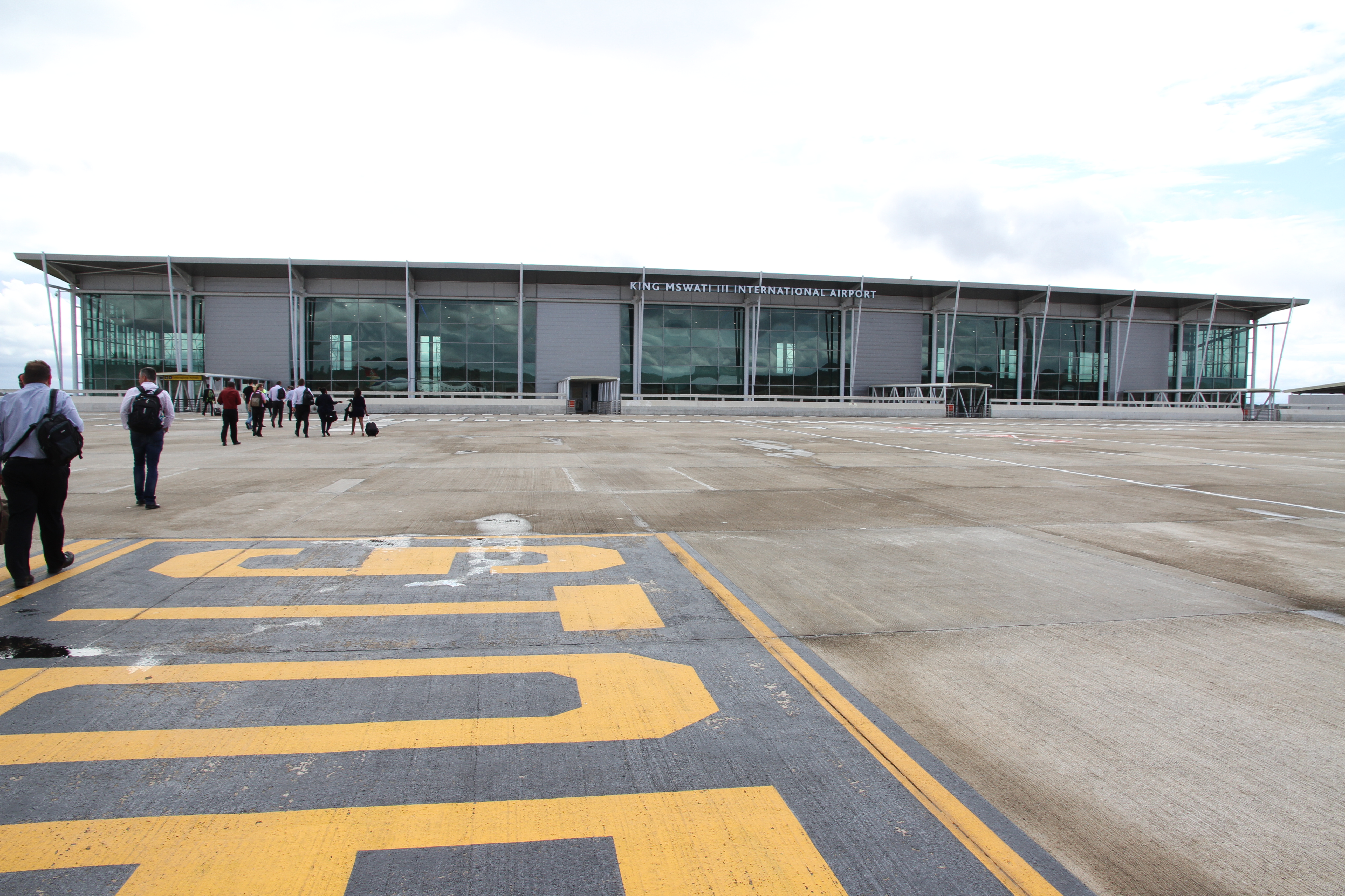ConstructionConstruction began in 2003 on this $150m project. The Taiwanese government contributed USD 22m to the project. Airside view of terminal It is part of King Mswati III's $1bn millennium project investment initiative to enhance Eswatini's position as a tourist destination, serving as a tourism gateway to Eswatini's game parks, either domestic or nearby located ones, such as Victoria Falls, Maputo, the Kruger National Park and KwaZulu-Natal game reserves. However, it has been on the drawing board since 1980, and since then Kruger Mpumalanga International Airport has opened and Maputo and Durban airports have been upgraded. There are also environmental concerns since Sikhupe is near Hlane game park, and may put rare species of eagles and vultures at risk. An Airlink Embraer 135 on the tarmac King Mswati III International Airport was planned to replace Matsapha airport by 2010, with the latter being taken over by the army. King Mswati III International Airport was inaugurated on 7 March 2014, despite not yet having an IATA license to operate. Service began 30 September 2014. FacilitiesPlans include a 3,600m CAT 1 runway, and capacity for 300,000 passengers per year. It would be able to handle Boeing 747 aircraft, and service flights to any destination in the world. Airlines and destinations