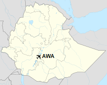 Awasa Airport (Amharic: አባ ጤና ደጃ; Aw'asa) (IATA: AWA, ICAO: HALA) is an airport in Awasa, Ethiopia. The construction of the airport (Coordinates: 7°05′42″N 38°23′54″E) started at the beginning of 2015. The old dirt runway is within the city, at 7°04′00″N 38°29′25″E.