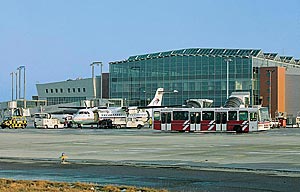 the Romanian coast of the Black Sea. From early 1988 until September 1989, extended reconstruction work was carried out. NVA, who was owner of the entire runway, taxiways and apron at that time, had the runway renewed. Its width was reduced to 51 metres to comply with international standards. At the same time, Interflug took over the entire terminal building, the public areas were then expanded and refurbished. The terminal was re-opened just as events came to a head politically in autumn 1989. In March 2001 one of the most beautiful airport terminals commenced operation and at the same time the underground S-Bahn (urban railway) station was opened. Around that time, a number of additional airport infrastructure projects were completed: a motorway access road, extended apron areas, new equipment halls, a weather radar and environment protection facilities.