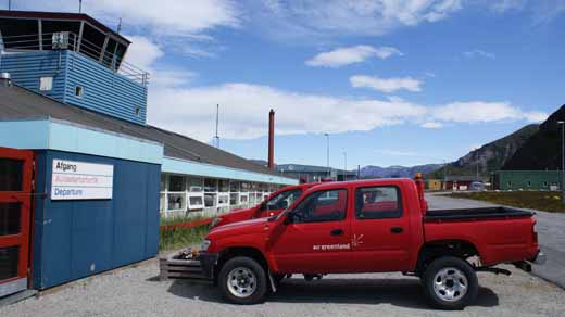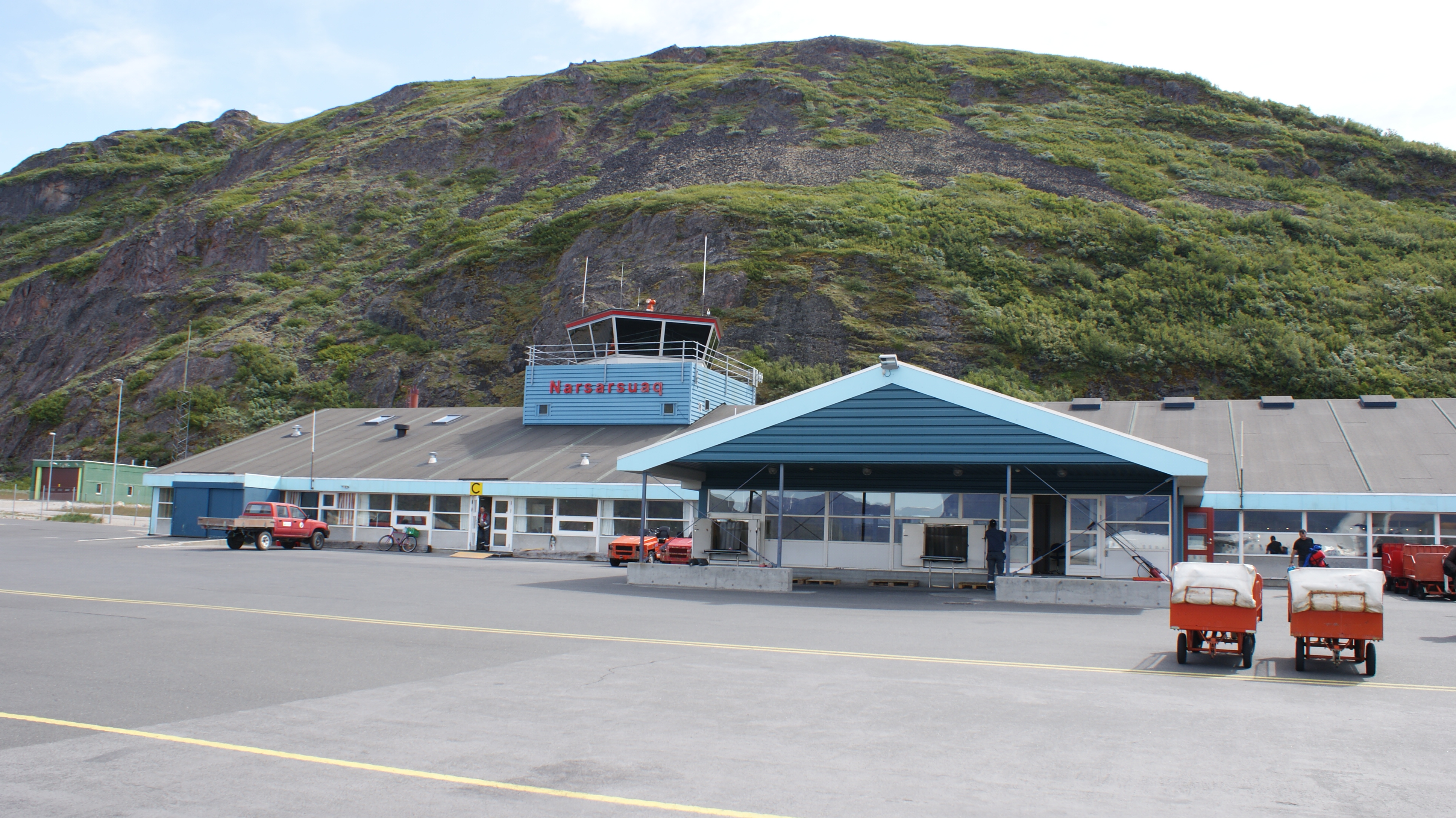 Accidents and incidentsOn 13 May 1957, a DC-4 freight aircraft operated by US Overseas Airlines hit the icecap on approach to Narsarsuaq. Two were killed, of three on board. On 5 August 2001, Dassault Falcon 20C freight aircraft of Naske Air crashed on approach to Narsarsuaq. It planned a fuel stop, going from Poland to the US. Three people were killed, including a passenger. FacilitiesIn the terminal there is a simple cafeteria, a duty-free ‘Nanoq’ shop, as well as a small tourist office, which helps coordinate general aviation activities at the airport. TransferTransfers to local settlements are normally done by boat or helicopter flights. Diskoline sells tickets to boats to Narsaq and Qaqortoq. Boats require a bus transfer since the port is around 2.5 km (1.5 mi) from the terminal.
