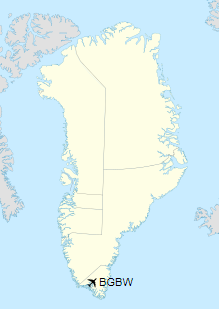 Narsarsuaq Airport (Greenlandic: Mittarfik Narsarsuaq) (IATA: UAK, ICAO: BGBW) is an airport located in Narsarsuaq, a settlement in the Kujalleq municipality in southern Greenland. Along with Kangerlussuaq Airport, it is one of two airports in Greenland capable of serving large airliners. It is also the only international airport in southern Greenland. The settlement it serves is small, with the airport primarily functioning as a transfer point for passengers heading for the helicopter hubs of Air Greenland in Qaqortoq and Nanortalik.