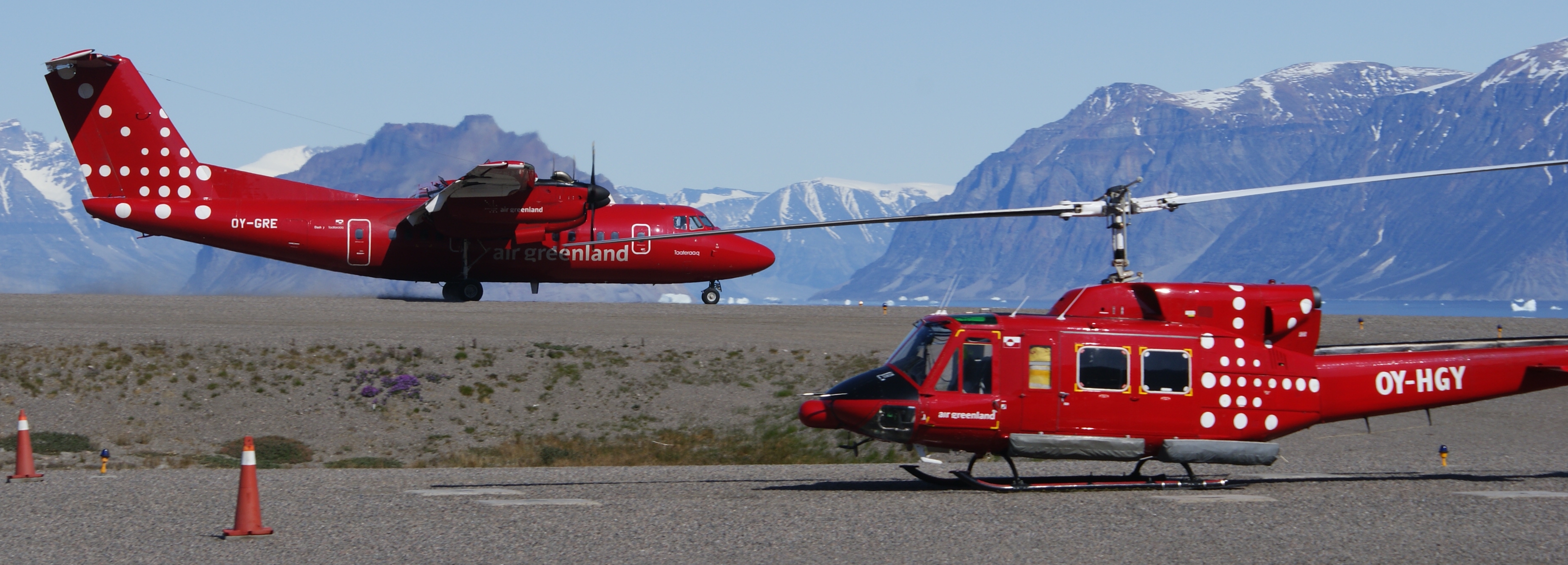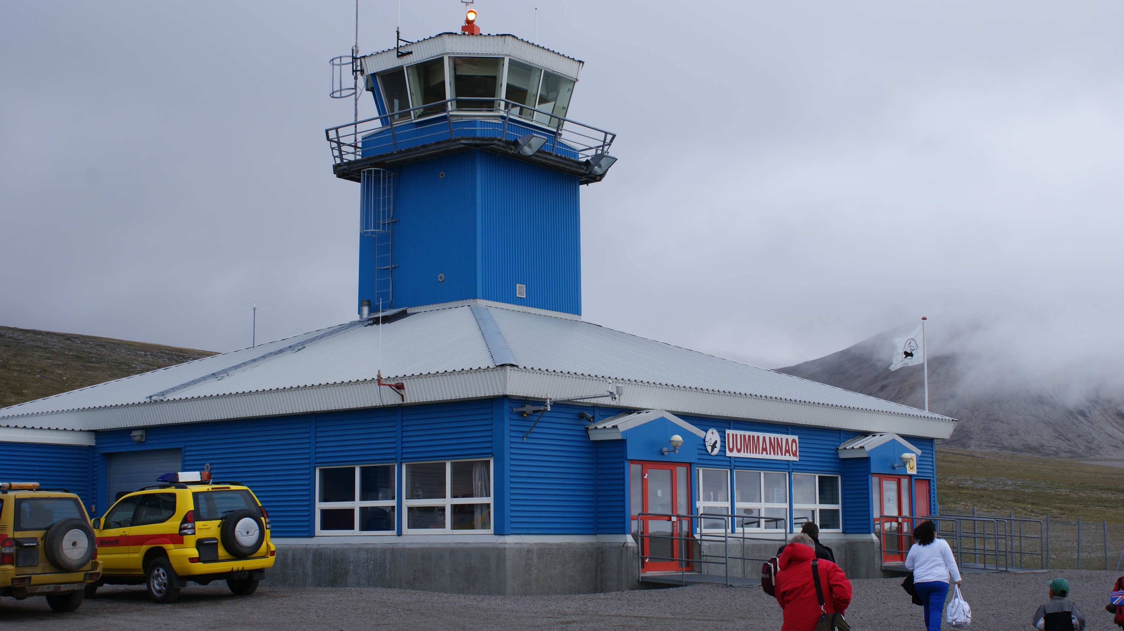 HistoryQaarsut airport was inaugurated on 29 September 1999, with the purpose of serving the much larger neighboring town of Uummannaq, 13.5 NM (25.0 km; 15.5 mi) southeast of the airport, located on an island of the same name in the south-central part of Uummannaq Fjord. The island−merely 23 km (14 mi) away in a direct line across Sarqarput Strait−is too small and rocky to host an airport of sufficient size to accommodate fixed-wing aircraft of Air Greenland. Air Greenland passengers transfer between Bell 212 helicopters and fixed-wing aircraft in Qaarsut The airport thus functions as a mini-hub for Uummannaq, with the terminal building labelled 'Uummannaq', regardless of its actual location, registration, documentation, and existing booking systems. BottlenecksThe decision to build the airport in Qaarsut was intended to solve the bottleneck on the Ilulissat-Uummannaq route (164 km), until then operated by Air Greenland with Sikorsky S-61N helicopters. Acquired in 1965, they are the oldest machines in the fleet of the airline, still in operation year-round in southern Greenland and during wintertime in the Disko Bay area south of Qaarsut. Air Greenland Bell 212 helicopter shuttling passengers between Qaarsut and Uummannaq The bottleneck problem is considered unsolved, since passengers must still be shuttled between the airport and Uummannaq Heliport. The primary function of the airport as a local hub has unintended consequences for communities of northern Greenland. All flights to Qaanaaq Airport include a stopover in Upernavik Airport. In order to avoid an overnight layover in Upernavik, all Qaanaaq-bound passengers must travel via Qaarsut. Flights on the Ilulissat-Qaarsut route are often sold out, which given a single weekly flight to Qaanaaq leaves passengers unable to travel to or from the northern communities, resulting in resentment. As of 2017, it is possible to travel Ilulissat–Qaanaaq or opposite within a day with only one plane change in Upernavik without touching Qaarsut. FutureProposals to close the airport have to date been rejected. Sunk costs, tourism potential for northwestern and northern Greenland, and the 2010 reinvigoration of the mining activities in Maamorilik northeast of Ukkusissat, as well as on Appat Island in the future−are the primary reasons for keeping the airport open. ATC tower and 'mislabeled' terminal Check-in desk of Qaarsut Airport Waiting area of Qaarsut Airport Airlines and destinations