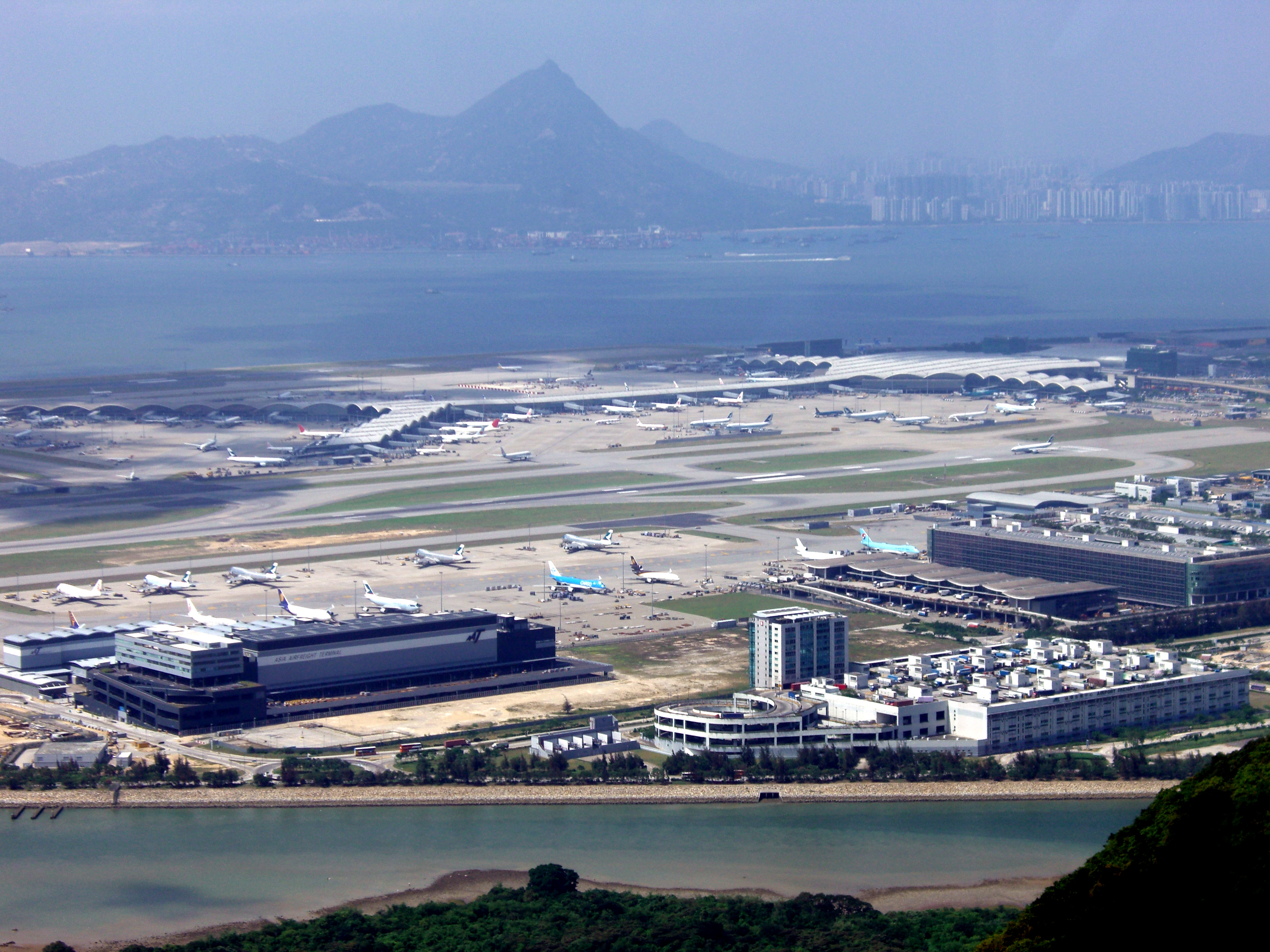 OperationsThe airport is operated by the Airport Authority Hong Kong, a statutory body wholly owned by the Government of Hong Kong Special Administrative Region. The Civil Aviation Department (CAD) is responsible for the provision of air traffic control services, certification of Hong Kong registered aircraft, monitoring of airlines on their compliance with bilateral Air Services Agreements, and the regulation of general civil aviation activities. The airport has two parallel runways, both of which are 3800 metres in length and 60 metres wide, enabling them to cater to the next generation of aircraft. The south runway has been given a Category II Precision Approach, while the north runway has the higher Category IIIA rating, which allows pilots to land in only 200 metre visibility. The two runways have an ultimate capacity of over 60 aircraft movements an hour. There are 49 frontal stands at the main passenger concourse, 28 remote stands and 25 cargo stands. Five parking bays at the Northwest Concourse are already capable of accommodating the arrivals of the next generation of aircraft. A satellite concourse with 10 frontal stands for narrow body aircraft has been commissioned to the north of the main concourse at the end of 2009, bringing the total number of frontal stands at the airport to 59. The airport was the third busiest for passenger traffic in Asia in 2008, and the world's second busiest airport for cargo traffic in 2008. In terms of international traffic, the airport is the third busiest for passenger traffic and the busiest for cargo since its operation in 1998. There are 85 international airlines providing about 800 scheduled passenger and all-cargo flights each day between Hong Kong and some 150 destinations worldwide. About 76 percent of these flights are operated with wide-bodied jets. There are also an average of approximately 31 non-scheduled passenger and cargo flights each week. The operation of scheduled air services to and from Hong Kong is facilitated by air services agreements between Hong Kong and other countries. Since the opening of HKIA, the Hong Kong Special Administrative Region Government has implemented a policy of progressive liberalisation of air services with the intention of promoting consumer choice and competition. Many low-cost airlines have started various regional routes to compete head-on with full-service carriers on trunk routes. The airport's long term expansion opportunities are subject to variables. A proposal to build a third runway has been under feasibility study and consultation but would be very expensive as it would involve additional reclamation from deep waters, and the building cost of the third runway may be as high as the building cost of the entire airport. On the other hand, there exists only one airway between Hong Kong and mainland China, and this single route is often and easily backed up causing delays on both sides. In addition, China requires that aircraft flying the single air route between Hong Kong and the mainland must be at an altitude of at least 15,000 feet. Talks are underway to persuade the Chinese military to relax its airspace restriction in view of worsening air traffic congestion at the airport. Other than that, Hong Kong Airport Authority is cooperating with other airports in the area to relieve air traffic and in the future, Shenzhen may act as a regional airport while Hong Kong receives all the international flights. Air trafficRecreational flying in Hong Kong is catered for by the Hong Kong Aviation Club, which undertakes flying training for private pilots and provides facilities for private owners. The Government Flying Service provides short and long range search and rescue services, police support, medical evacuation and general purpose flights for the Government. Passenger facilitiesThe airport is one of the most accessible in operation today. Despite its size, the passenger terminal is designed for maximum convenience. A simple layout and effective signage, moving walkways and the automated people mover allow quick and easy movement throughout the building. The airport also features the HKIA Automated People Mover, a driverless people mover system consisting of 3 stations to provide fast transportation between the check-in area and the gates. These trains travel at 62 km/h and there is no charge for their use. Hong Kong Business Aviation CentreThe Hong Kong Business Aviation Centre (BAC) is located within the confines of the airport and has its own terminal and facilities separate from the public terminal. It provides a full range of services for executive aircraft and passengers, including passenger lounge, private rooms and showers, business centre facilities, ground handling, baggage handling, fuelling, security, customs and flight planning. Designated spaces and hangarage are also provided at the BAC for private aircraft. Intermodal transportation hubIn order to sustain the growth of passengers, the Airport Authority formulated a “push and pull through” strategy to expand its connections to new sources of passengers and cargo. This means adapting the network to the rapidly growing markets in China and in particular to the Pearl River Delta region (PRD). In 2003, two major events improved connections to the PRD. One was the opening of a new Airport-Mainland Coach Station. The coach station features a 230 m² waiting lounge and sheltered bays for ten coaches. The dedicated coach terminal provides a comfortable environment for passengers travelling between HKIA and different cities in the PRD. A huge number of buses are operating per day to transport passengers between HKIA and major cities in the Mainland. The Coach Station was relocated to Terminal 2 in 2007. The 36 bays at the new Coach Station allow cross-border coaches to make 320 trips a day carrying passengers between the airport and 90 cities and towns in the PRD. Local tour and hotel coaches also operate from T2. HKIA’s network to Chin