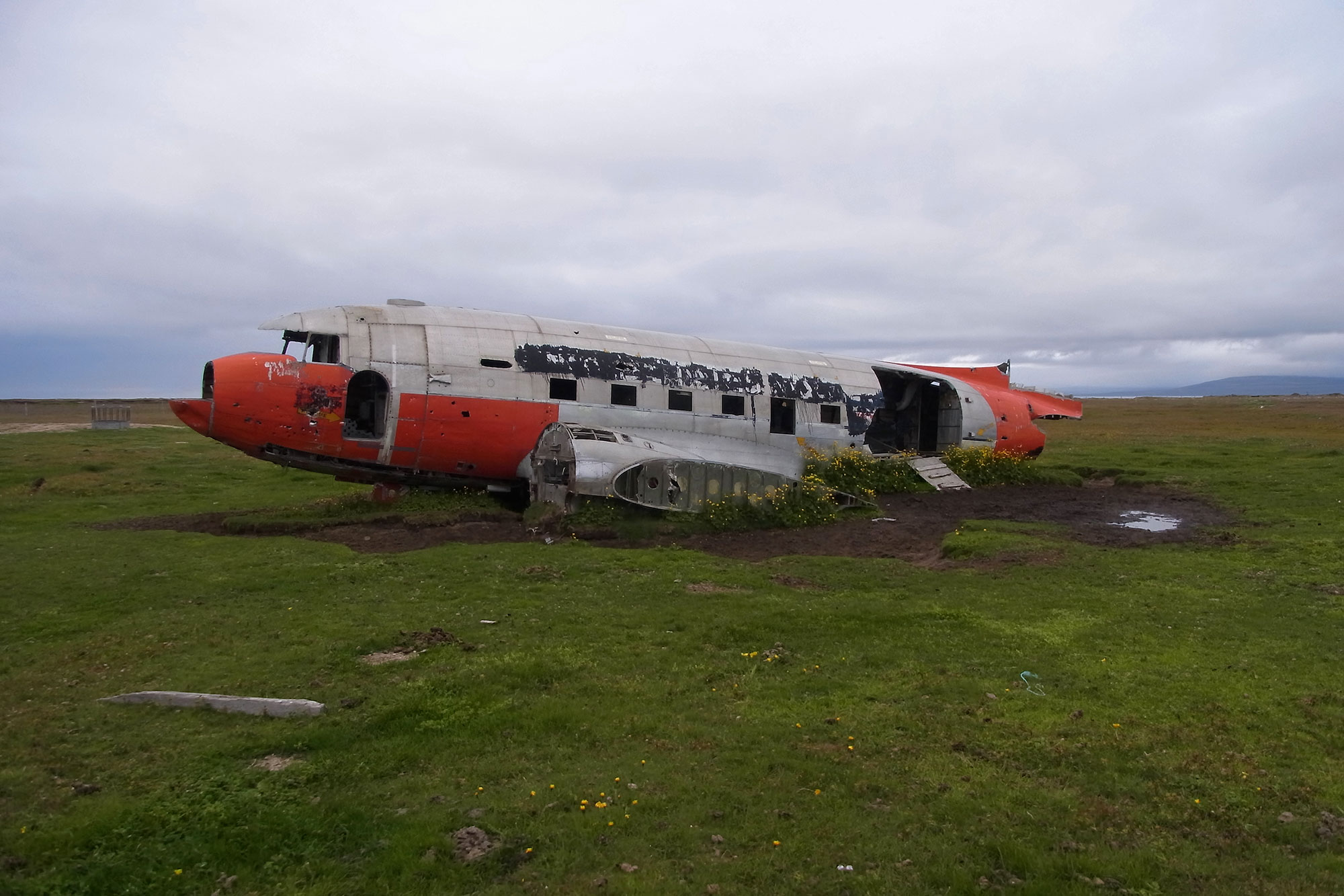 The wreck of the DC-3 is nowadays used as a sheep and horse shelter on private land