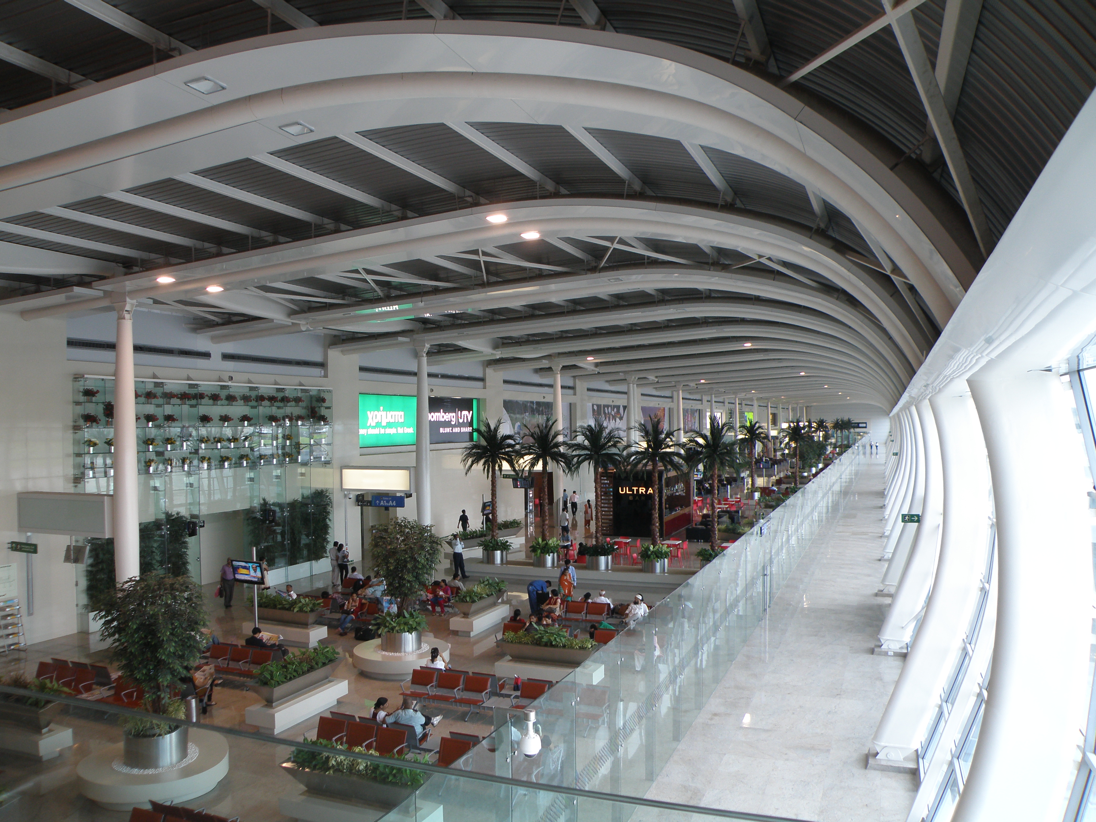Chhatrapati Shivaji International Airport (Marathi: छ्त्रपती शिवाजी अंतरराष्ट्रीय विमानतळ) (IATA: BOM, ICAO: VABB), formerly Sahar International Airport, is the primary airport in Mumbai, India, and is South Asia's busiest airport in term of passenger traffic . The airport, with its five operating terminals, spreads over an operational area of 1,450 acres (5.9 km), is India's and South Asia's largest and most important aviation hub, handling more than 25 million passengers and 533,593 tonnes of cargo. It along with Delhi's Indira Gandhi International Airport, handles more than half of the air traffic in South Asia. Formerly called Sahar (international) Airport and Santa Cruz (domestic) Airport, the two airports were merged and renamed after the 17th century Maratha Emperor, Chhatrapati Shivaji Bhosle, to Chhatrapati Shivaji International Airport. In February 2006, Mumbai International Airport Limited, a consortium of GVK Industries Ltd., Airports Company South Africa and Bidvest, was appointed to carry out the modernization of Mumbai Airport. HistoryJuhu Aerodrome functioned as the sole airport of Mumbai until after World War II. Due to operational constraints, given its low-level location and proximity to the Arabian Sea coastline especially during the monsoon, it became necessary to move further inland to the suburb of Santa Cruz. A new terminal building was erected by June 1948 and used by Air India to inaugurate its maiden international flight to London. Initially under the aegis of the Public Works Department, it was subsequently run by the Ministry of Civil Aviation of the Government of India. It was named after the neighbourhood of Santa Cruz where the airfield was located. Santa Cruz Airport remained the name until the new international terminal became operational at nearby Sahar in 1981. A major fire gutted Santa Cruz terminal in 1979. A temporary departure extension or "Gulf terminal" became functional in October 1979. But even prior to this mishap, plans were already underway during the mid 1970s to construct a new international terminal since Santa Cruz, despite several extensions, had become saturated. Even today, the domestic terminals 1-A and 1-B are commonly referred to as Santa Cruz. Mumbai International Airport Limited (MIAL), a consortium of GVK Industries Limited (GVK) and Airports Company South Africa (ACSA), was appointed to carry out the modernisation of Mumbai Airport in February 2006. According to a report submitted by GVK to the Ministry of Civil Aviation, the total land meant for the airport's operations consists of 936 acres (3.79 km) of which the actual encroached land is 262 acres (1.06 km) against the government estimate of 147 acres (0.59 km); and land under litigation is 34 acres (140,000 m). BOM ICAO airport code is derived from Bombay, prior to Mumbai. StatisticsChhatrapati Shivaji International Airport is the busiest airport in the Indian Sub-continent, in terms of passengers carried per year and second busiest in term of traffic movements. The Mumbai-Delhi route was recently ranked by Official Airline Guide (OAG) as the seventh-busiest domestic route in the world, based on the number of flights per week. This airport, along with Delhi's Indira Gandhi International Airport is the primary international gateway to India and served by approximately 50 international airlines. It is the primary hub for Jet Airways and GoAir and also serves as a secondary hub for a few other airlines, including Air India, Indian Airlines, IndiGo, JetLite, Kingfisher Airlines and SpiceJet. International traffic peaks late in the night, whilst peak domestic traffic is before 10:00. Nevertheless, at least 45% of traffic flows between 10:00 and 18:30 daily. In July, 2010, Chhatrapati Shivaji International Airport was ranked fourth best in the world for having aerobridges, fancy food courts, spas, and salons. This airport, along with airports in Delhi, Chennai, Bangalore and Kolkata handles more than 50% of the passengers in India. In the eleven months between April 2006 and February 2007, it handled 180,000 landings and take-offs and over 20 million passengers, with a total of 13.56 million domestic air passengers and 6.73 million international passengers. It registered a 21.28% growth in passenger traffic over the previous year 2005–06, when the figure was 17.6 million passengers. In 2008, for the second year in a row, it was the world's most-delayed airport in terms of arrivals. Only 49.95% of arrivals were on time. About 58% of its late arrivals in 2008 were delayed by 30 minutes or more although the delay in these arrivals however is largely attributed to air congestion at a flight's origin. StructureThe airport consists of two main terminals: Terminal 1 (Santa Cruz) for domestic flights and Terminal 2 (Sahar) for international flights. These terminals use the same airside facilities but are physically separated on the landside, requiring a 10–15 minute drive between them. The operating agency of the airport (MIAL) operates coach shuttle services between the domestic and international terminals for transit passengers. Terminal 1 is further divided into Terminal 1-A (which opened in April 1992, and serves Air India's subsidiaries Indian Airlines and Air India Regional, as well as Kingfisher Airlines), Terminal 1-B (which opened in 1998, and serves JetLite, SpiceJet, GoAir, IndiGo Airlines and other private domestic low cost carriers) and Terminal 1-C (which opened in April 2010, is meant for Jet Airways). Terminal 2, designed by Aéroports de Paris and opened in January 1981, is now Terminal 2-A. The original complex consisting of parking bays 41–46, namely, gates 3 to 8, the first aerobridges ever installed in the Subcontinent serves most airlines whereas Terminal 2-C, inaugurated in October 1999, is exclusively for Air India, Air-India Express and those carriers whose ground operations are handled by 