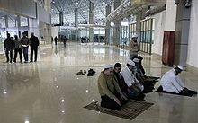 Muslims praying at Srinagar Airport. |