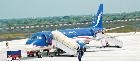Based on P.R.Brouse (Air Traffic controller at Trichy airport in 1942),the airport was used as Race course during 1930-40's.The airport had no buildings except ATC and had runway length of 600m.According to him, Trichy airport handled TATA's Dakota flight.The aircraft from Mumbai(via Bangalore) after re-fueling at Trichy airport carried passengers to Colombo.Usually 5 to 20 people traveled on this flight from Trichy. The Air Ceylon(Srilankan Airlines) operations started in late 1940s while Indian airlines service started before 1980.Both the airlines connected Trichy to Colombo and Jaffna. TerminalOld TerminalThe airport has an old terminal building. It has a long history. Before the construction of a new terminal this terminal would be crowded most of the timing. Now this building is being planned to be operated as a cargo terminal. If this plan is implimented the villagers in the surrownding districts would be happy as they can send their production to foreign at a less cost. Integrated Terminal BuildingThe New Integrated Terminal (Inaugurated on 21 February 2009 and started operations from 1 June 2009) has an area of 11777 sq m and is made of glass and steel structure having modern passenger friendly facilities such as central air conditioning system, aerobridges,baggage conveyor system, escalators, public addressing system, Flight Information Display System (FIDS), CCTV for surveillance, check in counters, car parking, etc. The Integrated Terminal Building has peak hour passenger handling capacity of 400 passengers and annual handling capacity of 3.24 lakhs. It has 2 aerobridges, 12 Check-in counters, 1 X ray scanners (for baggage). It also has 8+8=16 Immigration Counters (Dep. + Arr.), 2+4=6 Custom Counters (Dep. +Arr.), 2 Security check units and 3 Conveyor Belt – arrival (47m each). The expansion of apron has been completed to cater for parking of total 7 aircraft: 3 Category 'D' and 4 Category 'C' type of aircraft from existing capacity of 3 Category 'C' type of aircraft. ExpansionTiruchirapalli Airport is on Further, the airport is one of the non-metro airports selected for Indian Rupee 200 cr city side development on public-private partnership model. The Airports Authority of India (AAI) has already appointed a legal advisor for this and will shortly release a tender for the work. AAI has proposed Phase II expansion on 500 acres (2.0 km). The expansion includes extending the runway to 12,500 ft (3,810 m), construction of cargo, hangars, parking bay for aircraft maintenance and other works. The state government would provide land free to AAI for the phase II expansion. The Phase II expansion has been pending for a year due to land acquisition issues. People in and around the airport have opposed the move to acquire their land. The expansion gained momentum recently with the district administration deciding to go ahead with land acquisition opposite to the airport and also possible closure of the Tiruchirapalli-Pudukottai highway. Airlines and destinations