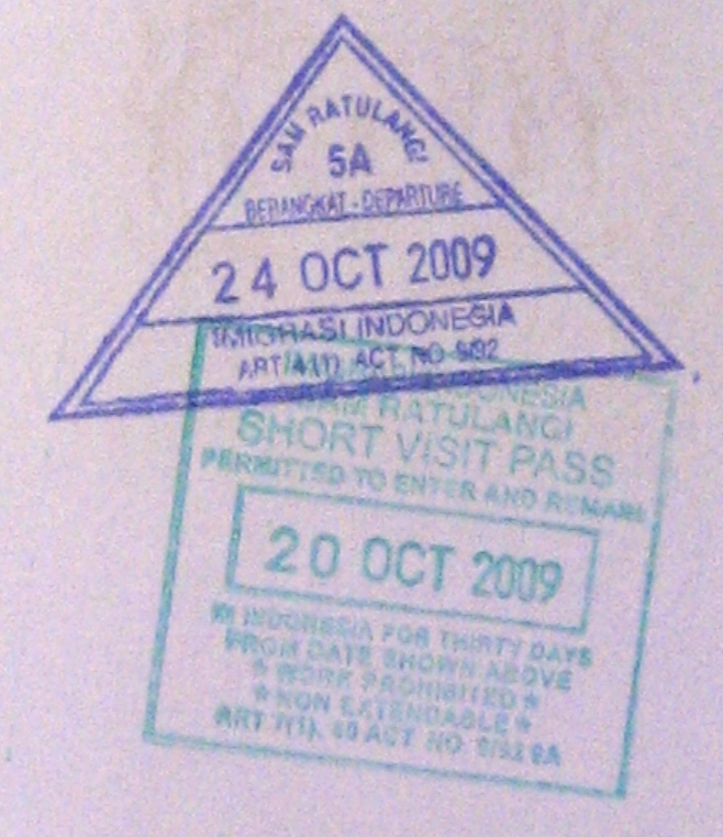 Passport entry (green) and exit stamps from the airport. |