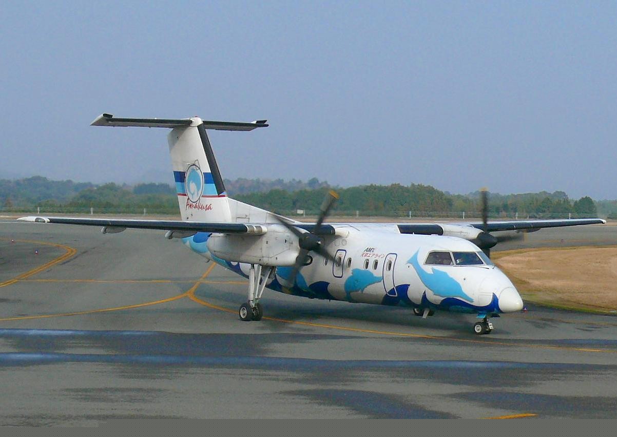 Amakusa Airfield (天草飛行場) is an airport located 2.3 NM (4.3 km; 2.6 mi) northwest of Amakusa, Kumamoto, Japan, on the Amakusa Islands (IATA: AXJ, ICAO: RJDA). Locals often referred to the airfield as Amakusa Airport. It is located on the northern side of the Amakusa Islands, north east of Amakusa city. Only one airline, Amakusa Airlines, uses this airfield. HistoryOn September 6, 1982, the governor of Kumamoto Prefecture announced plans for a small airport during a regular press conference. On December 26, 1990, the Ministry of Land, Infrastructure and Transport approved the construction of the airfield. Construction began in 1992. The first plane that landed at this airport was a DHC-8 of Amakusa Airlines on November 19, 1999. The airfield was opened for public use on March 23, 2000. In the spring of 2000, it had round trips between Amakusa Islands and Kumamoto twice a day. Starting from December 1, 2005, the operating time was extended from (8:00 am ~ 7:00 pm) to (7:40 am ~ 8:30 pm). It now has three round trips between Amakusa Airfield and Fukuoka Airport and one round trip between Amakusa Airfield and Kumamoto Airport (also one round trip between Kumamoto Airport and Kobe Airport) per day while using the same aircraft (aircraft registration number JA81AM). Since this airfield is served only by Amakusa Airlines and this airline only has one aircraft, the DHC-8 (pictured on the right) is the only aircraft that uses this airfield. Airlines and destinations
