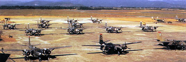 The 3rd Bomb Wing flew the Doublas B-26 Invader bomber during the war, remaining at Kunsan from August 1951 until October 1954. A Marine aviation squadron, VMF(N)-513, arrived in April 1952, and a few months later the base added the 474th Fighter-Bomber Group, which included three squadrons of F-84 fighters, bringing the total size of the operation to one wing, one group, and a Marine fighter squadron. The 474th bombed and strafed such targets as bunkers, troops, artillery positions, bridges, vehicles, airfields, and power plants, and sometimes escorted bombers that attacked munitions factories and other objectives.