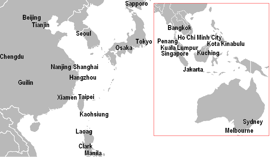 Bangkok-Suvarnabhumi, Beijing-Capital, Chengdu, Hangzhou, Kaohsiung, Nanjing, Nanning, Osaka-Kansai, Shanghai-Pudong, Seoul-Incheon, Singapore, Taipei-Taoyuan, Tokyo-Narita [seasonal], Xiamen |
