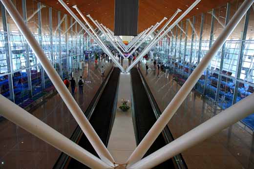 Low Cost Carrier TerminalWith an increasing number of passengers using the 'Low Cost Carrier Terminal '(LCCT), MAHB has approved an expansion beginning early 2007 to accommodate more passengers as the current LCCT is nearly in full capacity. The expansion of LCCT also shows the support for launch of Malaysia's first long haul low cost carrier, AirAsia X by making the terminal able to accommodate wide-bodied aircraft that are used by AirAsia X However, the Low Cost Carrier Terminal is a temporary solution for budget travellers, MAHB has submitted a proposal to the Transport Ministry to build a new, permanent LCC hub in between the main terminal building and satellite building A to replace the present Low Cost Carrier terminal. The airport operator has announced that the construction works for the extension of LCCT will begin in March 2008 and expected to complete by December 2008. The capacity for the LCCT will increase from 10 million passengers a year to 15 million passengers a year. A proposal for a more permanent building to house a new LCCT has been submitted and expected to have a capacity for 30 million passengers a year. It is also expected that the new LCCT will be completed by 2011 to 2012. It is expected that the current LCCT will be converted in to a cargo hub once the new terminal is completed. The RM124 million LCCT expansion project tender was won by Fajarbaru Builder Group Bhd and construction work is expected to begin March 2008. The new international arrival hall was opened on December 15, 2008 with expectation that the rest of the wing will be fully operational by March 2009. The international departure hall was finally open on March 18, 2009 which expanded the handling capacity from 600 passengers at one time to 3200 passengers. KLIA2The airport operator has announced that the construction of a permanent LCCT will commence sometime in 2008 although the site has yet to be finalized. It is expected that the permanent LCCT will have a design capacity of 30 to 35 million passengers per annum. KLIA East @ Labu was a proposed future airport. The airport will be located at Labu, which is 10 kilometres away from Kuala Lumpur International Airport (KLIA). It is proposed to replace the low cost carrier terminal (LCCT) in KLIA for AirAsia flights only. The construction of the new airport, on a 2,800 hectares (Template:Convert/ac) area at the state’s central corridor in Labu, would be financed by the private sector. The two parties who have agreed to it are AirAsia Group and Sime Darby who owns the land). It had been planned to start construction on January 2009 and will open 2011. Meanwhile, Malaysian Airports Holdings Berhad (MAHB), the operators of KLIA, plans to continue ahead with the construction of a new LCC Terminal at KLIA to increase terminal capacity for low cost airlines. After consultation with the government, the government instructed the airport operator to build the terminal at KLIA instead in close consultation with AirAsia. To accommodate the overwhelming increase in passenger traffic at LCCT, limited service hotel chain Tune Hotels.com announced that it is on track to open a 222-room hotel at the terminal in by the first quarter of 2009. According to news reports, the MYR 2 billion terminal will be funded by the government as a part of the second economic stimulus package. The new terminal will be located 1.5 km from the current main terminal, will have 68 aircraft parking bays and a third runaway which is located 1.5 km from the second runaway. The new terminal is expected to be 242,000 square meter in size, with a retail space of 32,000 square meters. It will be able to accommodate 30 million passenger with provision to expand to 45 million passenger a year. There is also a possibility to include a rail extension for the Express Rail Link. The construction is expected to begin in mid-2009 and finish in Q3 2011. During an announcement to set up virtual hub in Middle East, AirAsia X has cited fear that the new Low-Cost Carrier Terminal might not be ready by 2011 as there is no sign of any construction work or even groundbreaking of the new LCCT. The existing LCCT will not be able to cope as there won't be enough parking bays as AirAsia X is poised to take delivery of 12 more A330 by 2011. If the fear were true, it would be another blow to AirAsia and AirAsia X expansion plans. This comes just days after the Malaysian government denied AirAsia X the rights to fly into Sydney and Seoul. On July 15 2010, the was announced that Bina Putri with partner UEM Construction has won the tender to build the terminal for MYR 997.23 million. Construction works is expected to complete within 20 months. A380 UpgradesThe operator of Kuala Lumpur International Airport, Malaysia Airports Holding Berhad, had spent about RM135 million (approx US$39 million) to upgrade facilities at the KL International Airport (KLIA) in Sepang to accommodate the Airbus A380. Upgrading works started on April 3, 2006, and was completed by May 28, 2007. Works include the provision of shoulders on both sides of the two existing runways of 15 meters as well as the taxiways, building additional aerobridges at the three departure halls, namely C17, C27 and C37, and enhancing the mezzanine lounges for upper deck passengers of the aircraft at the departure halls. Awards and recognitionsSince its inauguration in year 1998, it has won numerous awards from international organizations around the world such as Skytrax and International Air Transport Association. KLIA's commitment to promote environment responsibility for all local and foreign travellers was recognized by EarthCheck, which was the first airport in the world to receive EarthCheck certificate in year 2004. Since its inauguration on June 27, 1998, the airport has won awards. With its continuous effort to provide excellent services to passengers, the airport has emerged as one of the top five airports in the world. In 2007, KLIA was rated the best a