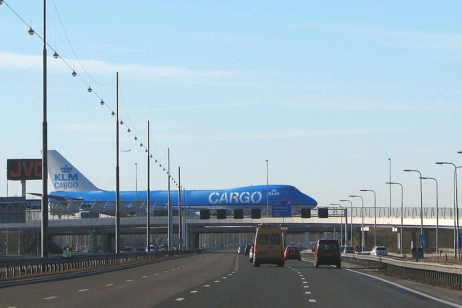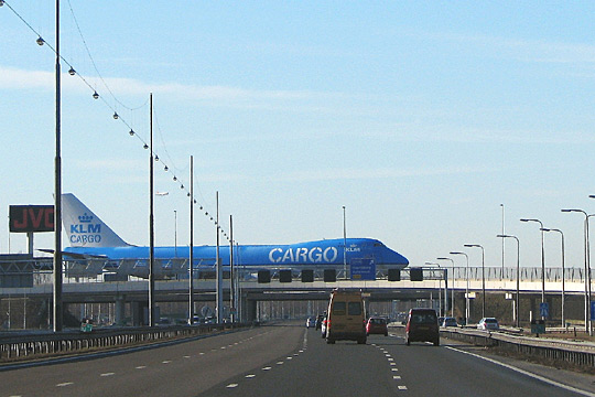 KLM Cargo Boeing 747-400ERF on the Taxiway Bridge crossing the Highway A4 E19