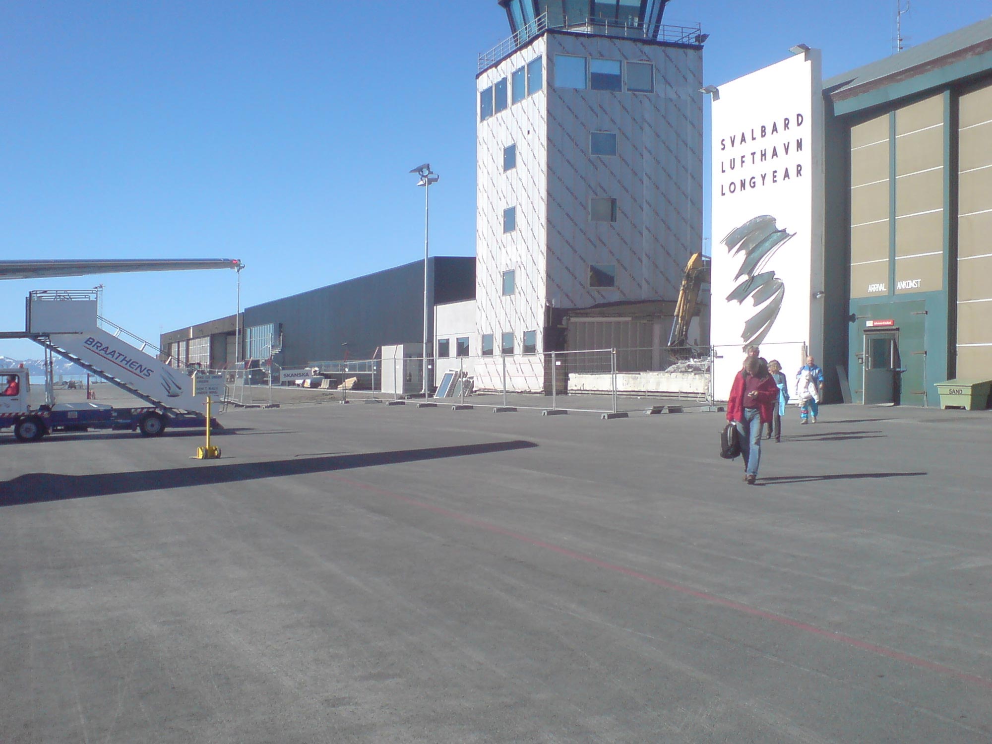 Construction started in 1973. The airport needed to be built on permafrost. The runway is insulated against the ground, so it will not melt during the summer. The hanger is frozen into the ground, with the pillars being meltet into place and then freezing stuck. The runway was plagued with frost heave due to a incorrect construction method, forcing the airport to regularly have to reasphalt the runway. In 1989, parts of the runway were reinsulated, giving these areas that previously had been the worst, an acceptable solution. In 2006, this measure was conducted on the full runway. An upgrade to the terminal building to allow larger capacity was completed in 2007. Services Both Braathens SAFE and SAS applied for the concession to fly from the mainland to Norway. This was granted to SAS, who would have one weekly service. From the airport was taken into use until the official opening, Braathens SAFE continued to fly charter flights for Store Norske. The first landing at the new airport was made on 14 September 1974 with a Fokker F-28. Braathens SAFE continued to fly until 1 September 1975. Russian authorities granted a concession for a semi-weekly service by Aeroflot from Murmansk Airport. The first attemt to officially open the airport were made with a SAS Douglas DC-9 on 14 August 1975. Among the guests on board was King Olav V. But thick fot at Longyearbyen forced the airplane to return. On 1 September, a Fokker F-27 from Braathens SAFE was used to calibrate the runways. On board were pilots from SAS and Aeroflot to learn about the landing conditions. The following day, the second attempt to open the airport was successful. In addition to the scheduled services, Store Norske chartered cargo flights from Fred Olsen Air Transport. Lufttransport has been at the airport since 1976. In 1984, two Bell 212 helicopters were stationed at the airport on contract with the Governor of Svalbard. The company signed an agreemnet with the Norwegian Coast Guard to have a Partenavia Spartacus planes stationed at Longyearbyen for fishery surveilance. Since 1994, the company has had a Dornier Do 228 stationed at the airport since 1994, and two since 2001. On 14 August 1987, Braathens SAFE re-entered the market, flying in parallel with SAS to Tromsø and Oslo. For the first time, the scheduled flights to Oslo were offered as day flights instead of the night flights offered by SAS. In 2002, after SAS bought Braathens, the subsidiary took over all flights to Longyearbyen for the group. From May 2004, they merged to SAS Braathens, that again became SAS from 1 June 2007. From 1 April to 1 November 2004, Norwegian Air Shuttle introduced three weekly services to Longyearbyen to Tromsø and Oslo, using Boeing 737-300 aircraft. The service was terminated due to low loads. A new service was started on 27 March 2008, with two direct services to Oslo, using larger Boeing 737-800 aircraft. The route was terminated later the same year. FacilitiesThe airport is located 1.6 nautical miles (3.0 km; 1.8 mi) northwest of Longyearbyen, the largest city on Svalbard. The airport also serves the near-by Russian settlement of Barentsburg. Although mainland Norway is part of the Schengen Area, while Svalbard is excluded, there is no passport control. There are 200 free outdoor parking spaces at the airport. There are taxis, rental cars and airport coaches available at the airport. Scandinavian Airlines provides handling services through SAS Ground Services. The runway is 2,323 metres (7,620 ft) long and aligned 10/28 (roughly east–west), equipped with instrument landing system. There are no taxiways. The 45 metres (150 ft) wide runway has two culverts that allow water from the mountain Platåberget to drain under it. About one third of the runway is dug into the terrain, while about two-thirds is built on an embankment. A layer of frost-stable fill, varying from 1 to 4 metres (3 ft 3 in to 13 ft 1 in) is under the runway to hinder the soil from unfreezing during summer. Airlines and destinations