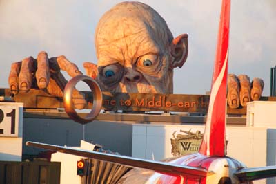 Gollum is 'precious' cargo and the airport will be keeping a close eye on our new Lord of the Airport. Wellington International Airport has displayed film sets, costumes, banners and hosted the farewell to the stars. The displays have stopped people in their tracks and attracted thousands of cameras and smiles.