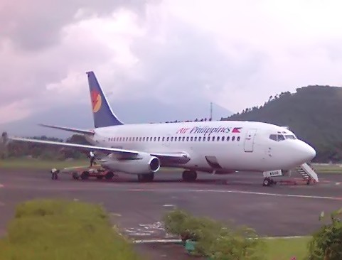 Legazpi Airport (Filipino: Paliparan ng Legazpi, Bikol: Palayogan nin Legazpi) (IATA: LGP, ICAO: RPLP) in the Philippines is a major airport in the Bicol Region, serving the vicinity of Legazpi City in Albay. It has a single runway with dimensions of 2280 x 36 meters, longer than those of the former airports of Bacolod City (1958 x 30 meters) and Mandurriao in Iloilo City (2100 x 43 meters), the airport can handle medium-sized civilian jets and military aircraft. HistoryThe jet age came to Legazpi in the late 1960s and by the '70s Philippine Airlines (PAL) introduced regular service to/from Manila using British Aircraft Corporation's BAC 1-11's. In the late 1980s PAL introduced Boeing 737-300s. YS-11's provided airlink to Mactan, Cebu, Masbate, and Virac. When PAL phased out the YS-11's and the short-lived Shorts SD-360 'Sunriser,' Fokker 50s replaced them. Prior to the debilitating labor strike in 1998 which caused PAL to temporarily cease operation, Legazpi Airport served as the airline's hub in Bicol, serving Manila, Cebu, Masbate, Virac, even Catarman, Samar. Today, it serves not only local clients but also transient passengers from southern Camarines Sur and the province of Sorsogon. Aside from PAL, Filipinas Orient Airways and Air Manila International served the airport prior to 1972, the declaration of Martial Law in the Philippines. Through the years, other airlines came and went: Air Philippines for some time served Legazpi with YS-11's and 737-200s. Asian Spirit served Pili for flights to/from Manila and Cebu and has since ceased operations with six million pesos in collectibles from local (Naga or Pili) franchisees. Asian Spirit might introduce flights to Legazpi aside from its sectors in Virac and Masbate. At present, Aboitiz also regularly calls on Legazpi. South East Asian Airlines, using the 19-seat LET-410, plies Cebu-Legazpi-Cebu Mondays and Fridays. When Pope John Paul II visited the Philippines in 1981, his itinerary included Legazpi City. The Papal plane was a chartered PAL Boeing 727 tri-jet. President Ferdinand Marcos arrived in his own jet; First Lady Imelda, and the then-Minister of Defense, Juan Ponce Enrile, arrived with their own retinues on separate jets. In the mid-1990s a Harrier jumpjet of the US Marines made an emergency landing here. Nearby Alicia Hotel housed the unexpected guests for days while the aircraft was being repaired. During that time, day and night, the airport site became an aviation museum of sorts with curious on-lookers taking a glimpse at the heavily guarded fighter plane, exactly the same piece used in the Schwarzenegger film True Lies. In February 2000, during a lull in nearby Mayon Volcano's eruption (which suspended regular commercial service), a chartered Boeing 727 tri-jet from Guam landed, bringing relief goods for evacuees. In September 15, 2001, coming home from her state visit to Japan, President Gloria Macapagal-Arroyo flew to Legazpi non-stop from Tokyo using a chartered PAL Airbus A320, highlighting the capability of the airport to handle international air traffic. In November 26, 2003, a Cebu Pacific DC-9-32 brought delegates to the Philippine Institute of Certified Public Accountants (PICPA) delegates on a charter flight from Cebu. PlansAlthough operating as sunrise-sunset (SR-SS) due to lack of instrument landing system (ILS), the airport can handle night landings and take-off but only on prior notice. The airport is up for upgrading. It has no ILS such that low ceiling during inclement weather causes flight cancellations, to the chagrin of passengers. It is also only about 12 kilometers from the crater of Mayon Volcano; during eruptions, flights are canceled because of the danger posed by ash fall. The Regional Development Council had previously approved the feasibility study to transfer the airport to a site some 27 kilometers from the crater of Mayon, in barangay Bariis south of Legazpi City. Aside from the advantage of its being way out of ashfall's reach, it is midway between Legazpi and the province of Sorsogon and the emerging eco-tourism destination of Donsol with its whale sharks. Of late, some politicians, though, were able to maneuver that the site be transferred to Alobo, Daraga which at 15 kilometers from Mayon's crater, is only two or three kilometers farther from the present runway. Also, planes using Alobo will take the same approach used at present: through Jovellar/Camalig areas that are prone to ash fall during eruptions; planes will also fly over the urban areas of Daraga and Legazpi. If it will be Bariis, approach/takeoff will be along thinly populated land; even over the sea (Poliqui Bay and Albay Gulf), making 24/7 operations feasible and practical. In early 2006, the proposed Southern Luzon International Airport was unveiled to the public in major newspapers. It would be built in the municipality of Daraga. Airlines and destinations