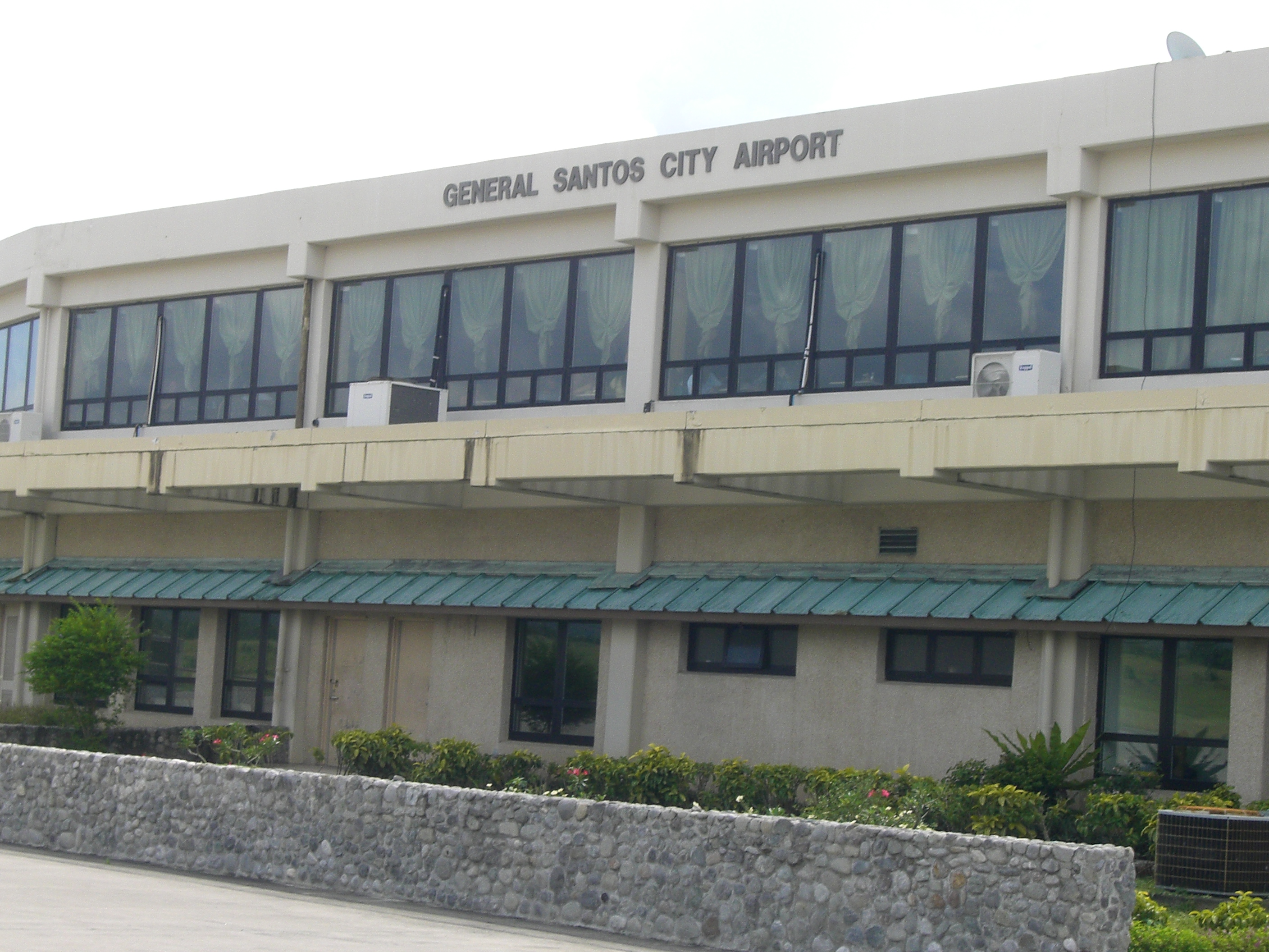 General Santos International Airport (Filipino: Paliparang Pandaigdig ng Heneral Santos, Cebuano: Tugpahanang Pangkalibutanon sa Heneral Santos) (IATA: GES, ICAO: RPMR) is an airport serving the general area of General Santos City, located in the province of South Cotabato in the Philippines. The airport is located in Barangay Fatima, but is usually believed to be located in nearby Barangay Tambler, hence the alternate name Tambler Airport. The airport is classified as an international airport by the Civil Aviation Authority of the Philippines, a body of the Department of Transportation and Communications that is responsible for the operations of not only this airport but also of all other airports in the Philippines except the major international airports. The airport replaced the old General Santos airport located in Barangay Buayan on July 6, 1996 and as such has inherited the old airport's IATA airport code, GES. The old airport now serves as the Rajah Buayan Air Base. HistoryGeneral Santos International Airport was formally inaugurated on July 6, 1996, although the airport was used in the 1996 Palarong Pambansa.The Biggest International Airport in Mindanao. All flights of Philippine Airlines from Iloilo City and Cebu City landed and departed to and from this airport including special flights to and from Manila using Boeing 737-300 aircraft. Because the terminal building was not yet complete at the time of the airport's opening, a temporary terminal was used adjacent to the current terminal. The current terminal became operational in August 1996. After the opening of this new airport, Philippine Airlines commenced direct flights to Manila thrice weekly, initially using Airbus A300 aircraft. This later became five times weekly in November 1996, just 4 months after its launch, and a daily service in December 1997. PAL's financial difficulties forced the closure of the Iloilo and Cebu routes out of General Santos in 1998, leaving PAL with only its flights to Manila. Air Philippines commenced operations at the new airport with flights to Manila also in 1997 using Boeing 737-200 and McDonnell Douglas MD-88 aircraft. However, the lack of a refueling facility at General Santos International Airport forced the return leg of the flight to stop at Mactan-Cebu International Airport for refueling. With the opening of a new refueling facility at the airport in the early 2000s, Air Philippines now flies direct to Manila and also operates separate flights to Cebu City. International flights to Manado in Indonesia were opened in November 2004 by Merpati Nusantara Airlines using Fokker 70 aircraft. However, due to poor loads, the service was cut after one month. Philippine Airlines also planned starting international services out of General Santos in the 1990s, but were unable to due to its financial difficulties. On October 2, 2006, Cebu Pacific commenced flights to Manila using Airbus A319 aircraft. This was later upgraded to the Airbus A320. Built largely with US funds totaling around $50 million, the airport is believed by some to be part of the United States military forward strategy in the Philippines. Airlines and destinations