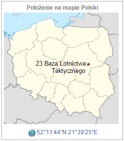 The 23rd Air Base (Polish: 23 Baza Lotnicza) is a Polish Air Force base, located 6 km east of Mińsk Mazowiecki. It was officially constituted on 1 January 2001, replacing the disbanded 1st Aviation Regiment "Warszawa". The main unit based there is the 1st Air Tactical Squadron flying MiG-29 fighters.