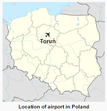HistoryThe airport was opened before the first World War in 1912- 1913, it served to military purposes. Airport infrastructureThere exists a railroad line nearby the terminal that can be used for passenger service. Toruń airport (click to enlarge) Toruń airport (click to enlarge) Toruń airport (click to enlarge) Toruń airport (click to enlarge) Toruń airport (click to enlarge)