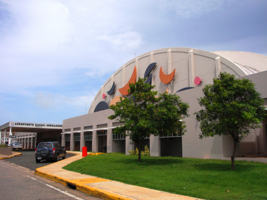 At the beginning of the airport, the runway was built in 1940 as part of the Borinquen Field Army Air Corps Base. In 1948 The base was renamed Ramey Air Force Base complex. Ramey was home to the Strategic Air Command and housed a number of B-36, B-47 and B-52s. Due to the size of the B-36 the runway at Ramey had to be built to a length of 11,702 ft and a width of 200 ft, added a 870 ft Blast Pad at each end and a 50 ft shoulder on each side. North SideThe North side of the airport constitutes a passenger terminal with an international side capable of handling flights of over 200 passengers. It also hosts the Main Cargo Terminal, the FedEx Terminal, and the General Aviation Terminal. The North side also houses the Copeca Jet Center Executive Terminal, as well as five service hangars. The military side of the airport is also located on the North side, housing the Air Station Borinquen, a United States Coast Guard facility. South SideThe South side of the airport is the largest portion of the airport, but is currently undeveloped. Since the airport was transferred to Puerto Rico Port Authority in 1973, the South side has been object of disputes and political campaign. Since then promises have been abundant, yet more than three decades later, the South side is still undeveloped. Under the administration of Sila M. Calderón and Aníbal Acevedo Vilá a master plan was conceived to turn the South side into a cargo hub for the Caribbean. Local residents object to the use of the South side for Cargo rather than a modern passenger terminal. Passenger Terminal The passenger terminal was recently upgraded to include air conditioning, more space for modern airline ticket counters and car rental counters. It constitutes two "gates" gate 14 and 15. Gate 14 is use for departures, while Gate 15 is use for arrivals. The terminal is divided into two sections, the domestic and the international sides. The domestic side is equipped with a United States Department of Agriculture facility, while the international side constitutes a United States Customs capable of handling up to 200 passengers. Future ExpansionThe Federal Aviation Administration (FAA) approved a master plan to redevelop the Rafael Hernández Airport in Aguadilla that will involve an investment of $1 billion over the next 20 years. PRPA plans call for the redevelopment of the Aguadilla airport on a scale that will rival LMM. The Aguadilla airport currently has two commercial passenger gates. The master plan calls for a total of 30 commercial passenger gates, 12 shy of the 42 commercial passenger gates that currently exist at LMM. There are plans to expand the road that give access to the airport. Martinair is expanding its air-cargo operations to Aguadilla Airport. The expansion to Aguadilla will facilitate more flights (up to 12 a week by 2010) to and from the island and serve as a value-added cold-chain hub for the transport of flowers and produce from South America for consumption in Puerto Rico, the mainland U.S., Europe and other parts of the world. There are official plans to renovate the runway enroute to house FedEx expansion. Passenger Airlines and DestinationsIn the past American Airlines offered service to their hub in Miami from Rafael Hernandez Airport. Miami, as well as other popular routes, currently lacks service from the airport. These markets include but are not limited to Chicago, Philadelphia, Boston, Hartford, and Baltimore. These cities are home to some of the largest Puerto Rican communities in the United States, many of whom have ties to Aguadilla and the surrounding region.
