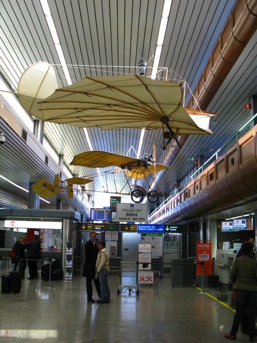 Ljubljana Jože Pučnik Airport (IATA: LJU, ICAO: LJLJ) (Slovene: Letališče Jožeta Pučnika Ljubljana), also known by its previous name Brnik Airport, is the international airport of Ljubljana, Slovenia. The airport is located near the village of Brnik, 19 km (12 mi) north of Ljubljana and 11 km (6.8 mi) south of Kranj on the road between Kranj and Mengeš. It has a 3,300 × 45 m (10,827 × 148 ft) paved runway. The airport was opened on December 24, 1963. It is named after Jože Pučnik (1932-2003), Slovenian public intellectual, dissident, and politician, leader of the Democratic Opposition of Slovenia between 1989 and 1992. Brnik Airport is home to Adria Airways, the Slovenian flag carrier. There are currently two low-cost carriers serving the airport: EasyJet and Vueling Airlines which connect Ljubljana to London Stansted, Malpensa Airport, Paris-Charles de Gaulle Airport and Barcelona. A number of other airlines also serve the airport. On December 8, 2004, the airport received its first annual millionth passenger. Overall, the airport handled 1,524,028 passengers in 2007. It is by far the busiest airport in Slovenia. The airport is served by a highway exit off the A2 motorway and by bus service connecting it with Ljubljana and Kranj. A rail line to both cities is planned as well. Airport is equipped with ILS Cat IIIb on runway 31. NDB and VOR approach are also available. The runway of the Ljubljana Jože Pučnik Airport was closed to air traffic in April 2010. During that time, the entire width of the asphalt surface of the runway was renovated, as well as the asphalt surface on some parts of taxiways. Airlines and destinationsScheduled