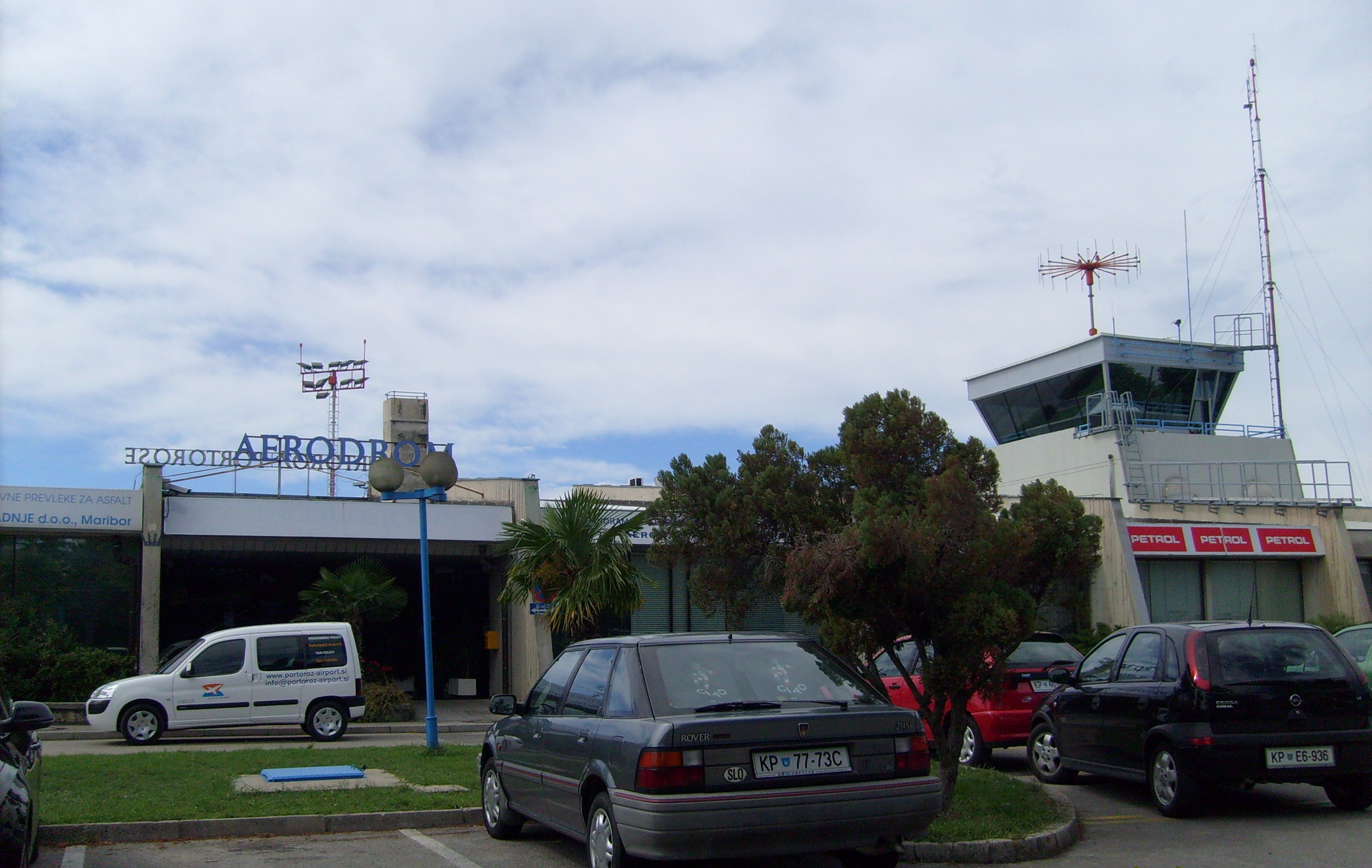Portorož Airport from behind Portorož Airport (Slovene: Letališče Portorož) (IATA: POW, ICAO: LJPZ), which is the smallest of three international airports in Slovenia, is located near the village of Sečovlje, 6 km (3.7 mi) south of Portorož, and less than 300 m (980 ft) from the Croatian border. The airport was opened on 27 September 1962. In addition to Portorož, the airport serves a number of other tourist destinations in the region, including Piran, Izola, Koper in Slovenia, Trieste in Italy and Umag in Croatia. The airport is intended for passenger and cargo transport, sport, tourist and business flights. It lies at two metres above sea level, the runway measures 1,200 × 30 m (3,937 × 98 ft). Technical InformationAlthough the airport fire station is currently delcared CAT 2, it can be upgraded to CAT 4, provided a minimum of 12 hours advance notice is given - prior to commencement of the respective flight operations. Runway 33, which, as in the case of Runway 15, has a runway length of 1,200 m (3,937 ft.) for take-off purposes. However, unlike runway 15, runway 33 has a displaced threshold, meaning that aircraft landing on this runway, i.e. at a heading of 330°, are required to touchdown (landing) at a position approx. 230 m (755 ft.) from the beginning of the runway, thereby reducing the runway landing distance to approx. 970 m (3,182 ft.). Airlines and destinations{{Airport-dest-list |[[[Jat Airways]] | Belgrade |[[Spreeflug | Leipzig-Altenburg, Eisenhüttenstadt-Frankfurt (Oder) }} Airport ServicesAlthough relatively small, a wide-variety of services are offered at Portorož Airport: modern airport facilities including technical and fuel service, services under contract (such as air taxi), panoramic flights, business charter flights, a flight school, parachute jumping, minibus transfer, a hotel room booking service, a restaurant, a duty free shop as well as car rental services. Airport HistoryAs in the case of the development of many airports, Portorož Airport had a humble beginning. In 1962, ground preparations are initially made for the creation of a sports airport with a 400 m (1,312 ft.) grass runway. However, in response to the LZJ decision to allow the third Adriatic Parachute Cup competitions to take place in Portorož the following year, the plans for the grass runway are ultimately changed and the runway is extended to 800 m (2,625 ft.). On 27 September, 1962, a flight inspection team examine Portorož Airport and recommend the issuance of a six-month temporary registration, which would classify it as a secondary sports airport, permitting the landing of aircraft weighing up to 3,000 kg (6,600 lbs.). The following year, on 3 April, 1963, Aero club Piran is formed. Later in 1963, the third Adriatic Parachute Cup competitions are held. On 28 January, 1971, the city of Piran decides to build an international sports airport at Portorož Airport. In July of the same year, the airport location is approved and the subsequent construction permits are issued for the construction and reconfiguration of the runway: 700 m long and 20 m wide (2,297 ft. long and 66 ft. wide). On 24 January, 1972, the airfield construction and reconfiguration works are completed. The following year, 12 February, 1973, the ZUCZP grants permission to register and license Portorož Airport for aviation sports purposes. Further development of the airport continues, and in January 1975, the Coast Flight Centre is established. Later in 1975, construction work begins on a runway refurbishment and extension project. The first building phase of the airport terminal and platform is also initiated. The following year, on 21 August, 1976, the airport re-enters full operations after construction works at the airport are completed. These include an enhancement to the runway, which is extended to 850 m (2,789 ft.) and widened to 28 m (92 ft.) - as well as the construction of an apron. Work is also completed on the first phase of the airport terminal and platform. On 1 October, 1978, Portorož Airport is formally re-opened and entered into the register of airports and the register for panoramic flights. In 1979, a 400 m² aircraft hangar is constructed and the first C-172 aircraft is purchased. Portorož Airport gained the status of a commercial passenger airport, when on 2 June, 1980, the Federal Authority for Transport and Communications issues a permit that allows the airport to be operated as a category "D" airport for civilian use in both domestic and international flights. Upgrades to the airport continue, and in the same year, a fueling station, which supplies Avgas 100LL, is built. On 1 May, 1981, an Aero Commander 500 (Turbo Commander) aircraft carrying 9 passengers lands from Passau. Also in 1981, the airport facilities are further expanded and include the construction of a control tower, border crossing, meteo and FIO. In 1983, the first Dash 7 lands at the airport. On 24 April, 1984, the runway is lengthened to 1,200 m (3,937 ft.), and widened to 30 m (98 ft.). The following year, on 20 July, 1984, the airport is registered to handle Dash-7 aircraft. On 20 March, 1986, construction work is completed on a technical aircraft hangar and airport fire station. In 1989, in order to facilitate night operations, runway lighting and an approach lighting system in the vicinity of the airport are installed. As a consequence, on 21 March, 1989, the Federal Secretary for Transport and Communication issues a permit, which allows night operations. Also, the ICAO classification 2C is established and the fire station receives a category 4 designation. Furthermore, a permit is issued for take-offs and landings of aircraft with a maximum weight of 27 tonnes (54,900 lbs.). Investment in Portorož Airport continued, and on 15 April, 1991, the Casino Touristic Company Turistično podjetje p.o. Portorož adopt a memorandum of understanding and form a limited liability company: Aerodrom Portorož d.o.o. From 13 to 16 M