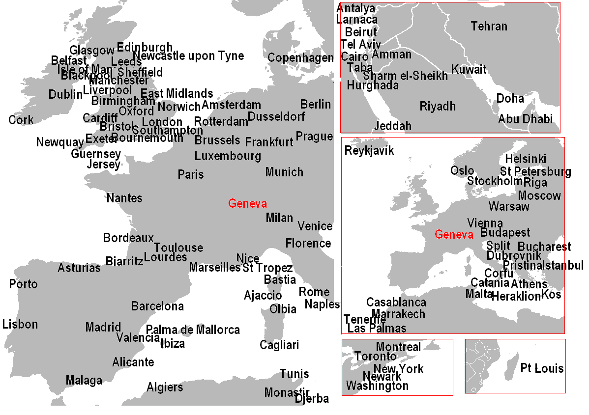 Note: Some of these airlines only serve Geneva seasonally, especially during the winter ski season