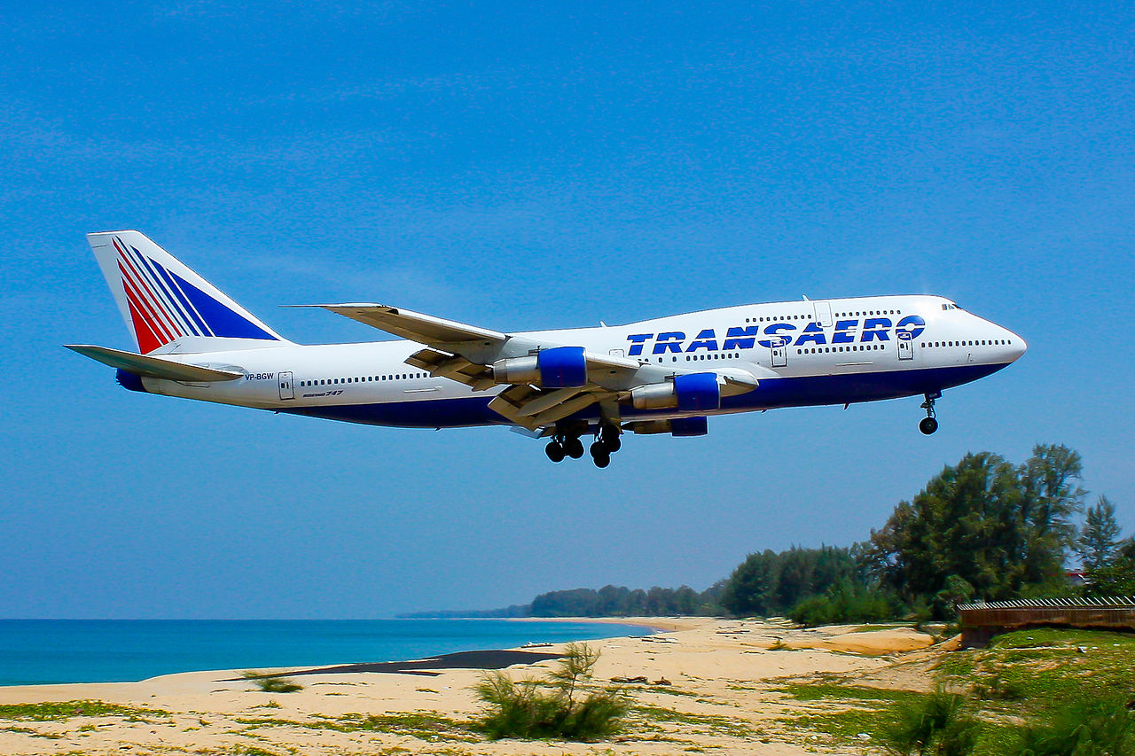 Transaero Airlines Boeing 747-300 landing at Phuket International Airport