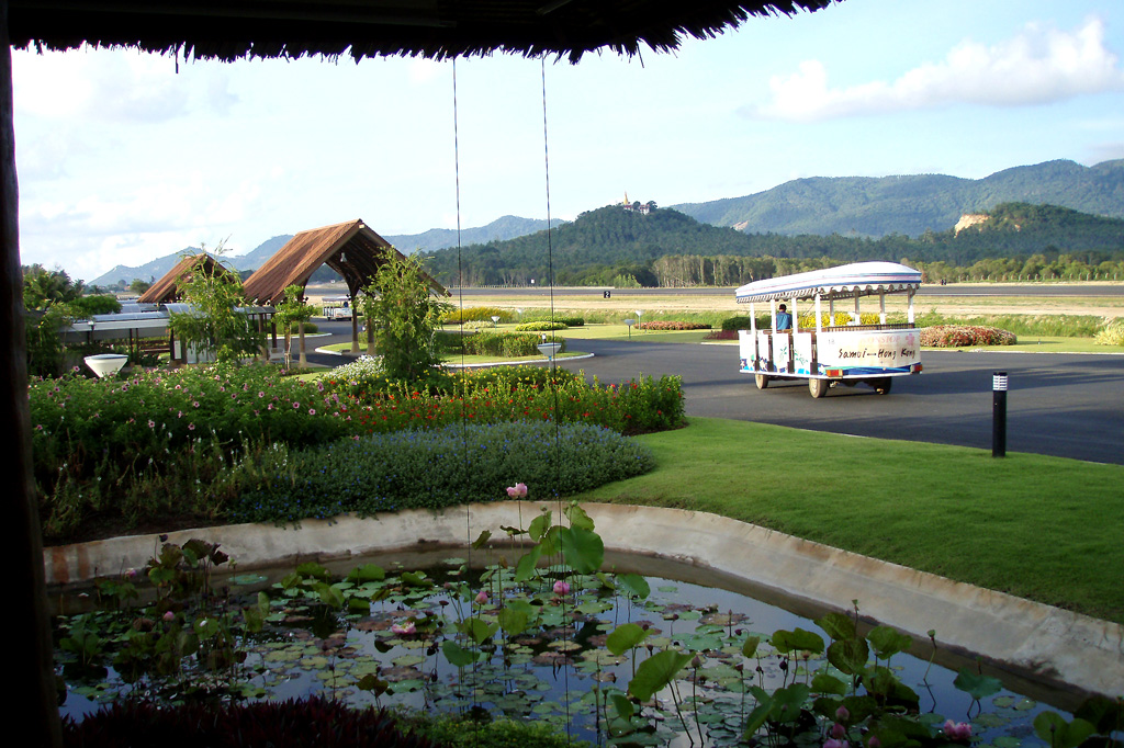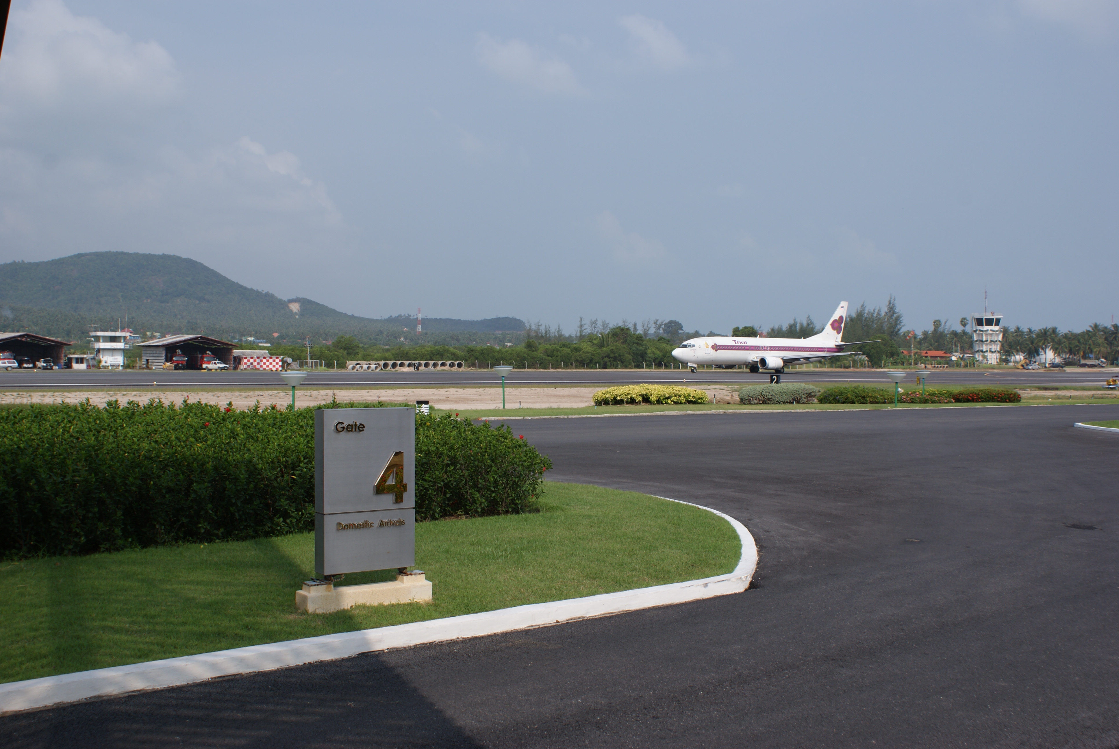 Samui Airport is an unusual airport because there is no indoor area, except the gift shop. The airport has 2 terminals (Domestic & International). The International terminal is located about 50 metres north of the domestic. The airport is located near the Big Buddha Pier where ferries to Ko Pha Ngan depart from. High speed ferries to Koh Tao and Chumphon depart from the Maenam beach pier, located approx 6 km North west of the airport. It was built by Bangkok Airways. Construction began in 1982 and was officially opened in April 1989.
