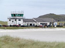 Barra Airport is small but well equipped. The control tower looks east over Traigh Mhor towards the nearby island of Orasaigh, and to Fuday and Eriskay in the distance. From the rear of the control tower it is possible to see over the dunes to the breakers of the Atlantic crashing in on the beach of Traigh Eais, three hundred yards to the west.