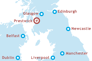 It was thought that the story of Glasgow Prestwick International Airport began around 1934 with a few small planes using ‘the Meadows’ at the end of Monkton Village. However, historians have now discovered evidence that aircraft were on or near the site around 1913, a mere 10 years after the Wright Brothers first took to the air. In the pre-war years, the site developed as a training airfield. The pioneer, David McIntyre, set up Scottish Aviation Ltd in 1935 and acquired 348 acres of Ayrshire countryside just behind Orangefield House. By the end of that year, accommodation had been developed including a hangar for Tiger Moth bi-planes, offices, lecture rooms and a small control tower. As WW II intervened, the site developed into a major airport particularly for the delivery of American aircraft under the Lend Lease programme. On some days up to 300 aircraft arrived for onward delivery! At this time, training gave way to aircraft production undertaken by Scottish Aviation Ltd. Many famous aircraft types were built at Prestwick until production of the BAe Jetstream ceased in 1998. The original factory was expanded out of all recognition when in 1941, the Palace of Engineering, built in Bellahouston Park, Glasgow for the 1938 Empire Exhibition was taken down and rebuilt brick by brick at Prestwick. This magnificent building, an excellent example of Art Deco architecture survives today under the ownership of BAe Systems and can be seen on the North side of the airport directly opposite the terminal.