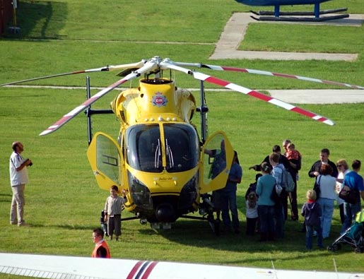 Emergency services air support Both the Greater Manchester Police Air Support Unit and the North West Air Ambulance base a helicopter at the airfield. The Police Air Support Unit is active 24 hours a day, 365 days a year. North West Air Ambulance is a registered charity providing a regional medical air emergency service covering Lancashire, Greater Manchester, Cheshire, Merseyside and Cumbria. The NWAA has one MBB Bo 105 helicopter based primarily to serve Greater Manchester, South Lancashire, Cheshire and Merseyside. Helicopter out of hours movements City Airport Manchester can operate as an unlicenced airfield during the hours of darkness by arrangement for commercial, military, police and air ambulance helicopters, as the airport can be equipped with portable runway lighting. This facility is used particularly during football matches at nearby Old Trafford, (Manchester United) and City of Manchester Stadium (Manchester City). Rescue and fire fighting City Airport Manchester operates a Category 1 Rescue and Fire Fighting service, utilising a Toyota Hilux Double Cab as a fire tender equipped with 80 imp gal (360 L; 96 US gal) of foam/water mix.