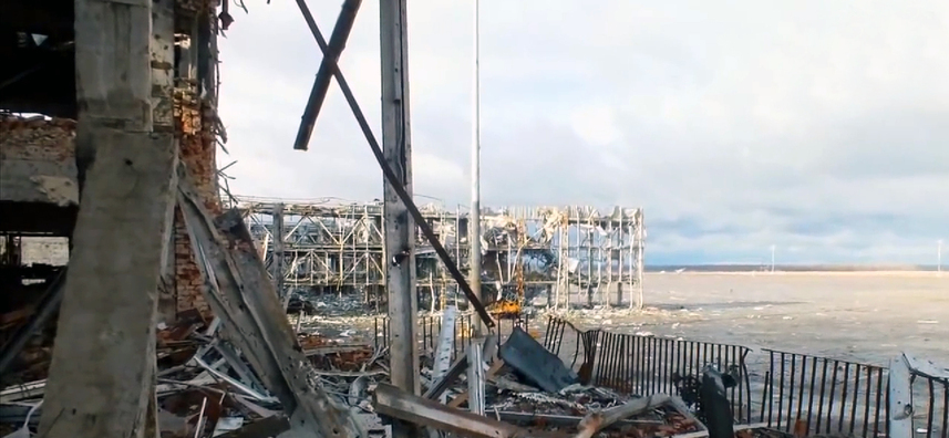 Over the course of battles for the airport, the airport complex suffered extensive damage from constant bombardments and change of hand between pro-government and proxy forces. The main terminal buildings, with their sturdy concrete construction, served as garrisons and shelters for soldiers defending the airport grounds, and as a result the buildings would be subjected to attacks and suffer extensive structural failures, most notably with the collapse of the massive roof over the new terminal building’s mezzanine. Similarly, the control tower was contested by opposing forces due to its strategic lookout point, but eventually collapsed in January 2015 during the final leg of the Second Battle of Donetsk Airport.