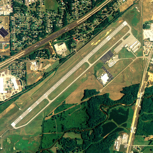 Anniston Metropolitan Airport covers an area of 627 acres (254 ha) which contains one asphalt paved runway (5/23) measuring 7,000 x 150 ft (2,134 x 46 m).