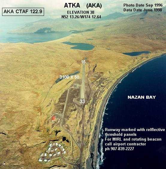 Atka Airport (IATA: AKB, ICAO: PAAK, FAA LID: AKA, formerly 40A) is a state-owned public-use airport located two nautical miles (3.7 km) north of the central business district of Atka, a city on Atka Island in the U.S. state of Alaska. Scheduled commercial airline service is subsidized by the Essential Air Service program.