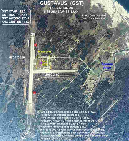 Gustavus Airport (IATA: GST, ICAO: PAGS, FAA LID: GST) is a state-owned public-use airport located in Gustavus, a city in the Skagway-Hoonah-Angoon Census Area of the U.S. state of Alaska. Airline service is subsidized by the Essential Air Service program. Facilities and aircraft