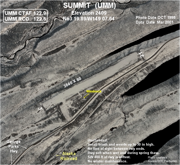 Summit Airport (IATA: UMM, ICAO: PAST, FAA LID: UMM) is a state-owned public-use airport located in Summit, in the Matanuska-Susitna Borough of the U.S. state of Alaska. It is about six miles south-southwest of Cantwell, Alaska.