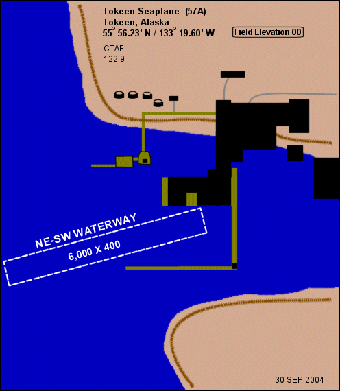 Tokeen Seaplane Base has one seaplane landing area designated NE/SW which measures 6,000 by 400 feet (1,829 x 122 m). For the 12-month period ending December 31, 2006, the airport had 55 aircraft operations, an average of 4 per month: 91% air taxi and 9% general aviation.