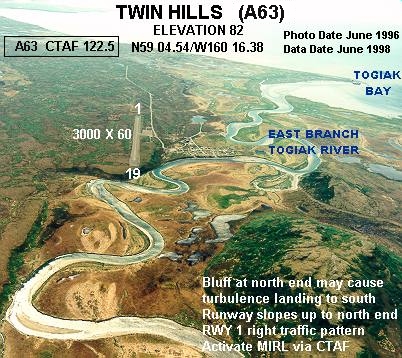 Twin Hills Airport (IATA: TWA, FAA LID: A63) is a state-owned, public-use airport serving Twin Hills, in the Dillingham Census Area of the U.S. state of Alaska. Scheduled airline service to Dillingham Airport is provided by Peninsula Airways (PenAir).